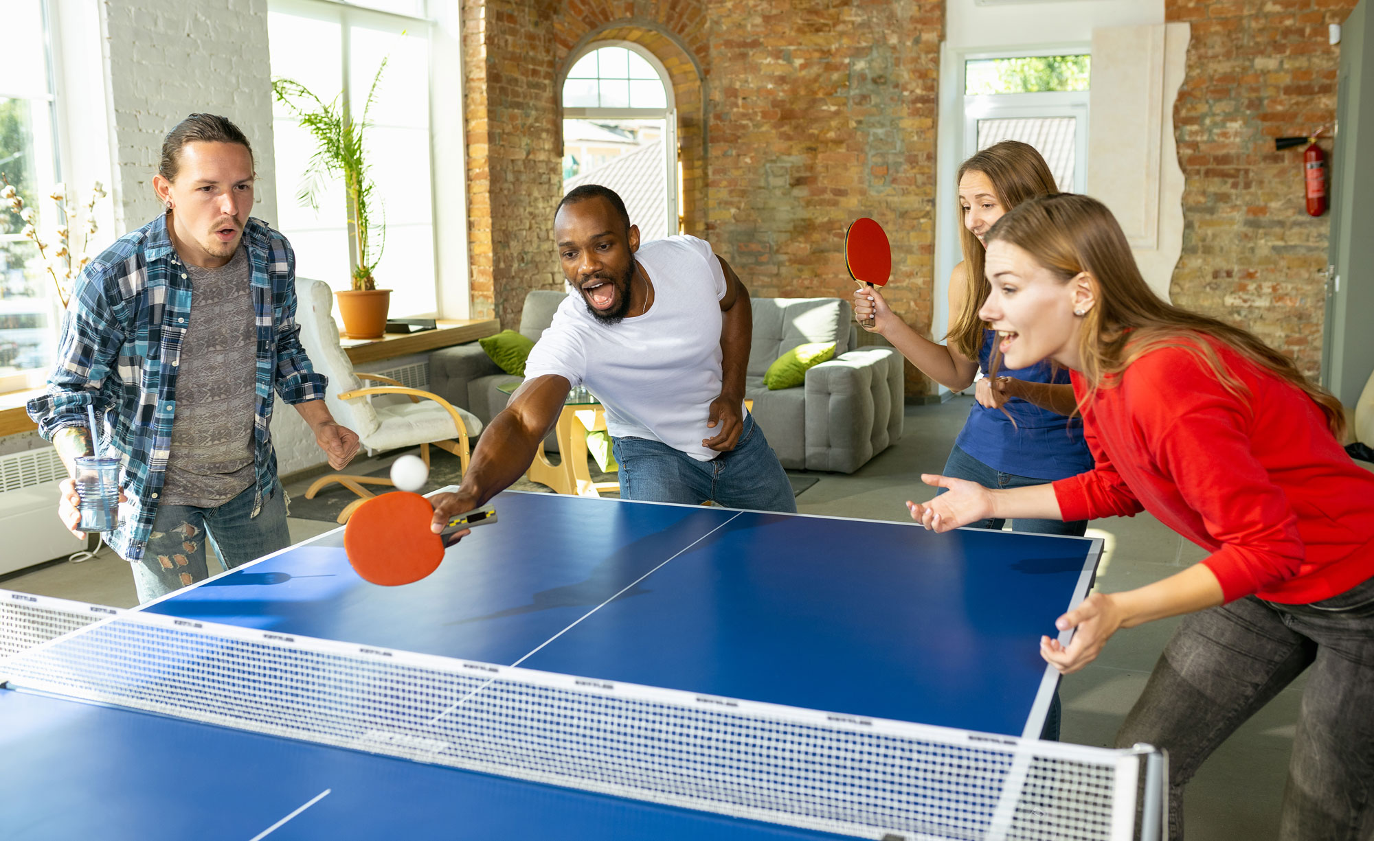Table tennis (also known as ping-pong) is a racket sport derived from tennis but distinguished by its playing surface being atop a stationary table, rather than the court on which players stand. Either individually or in teams of two, players take alternating turns returning a light, hollow ball over the table's net onto the opposing half of the court using small rackets until they fail to do so, which results in a point for the opponent. Play is fast, requiring quick reaction and constant attention, and is characterized by an emphasis on spin, which can affect the ball's trajectory more than in other ball sports.