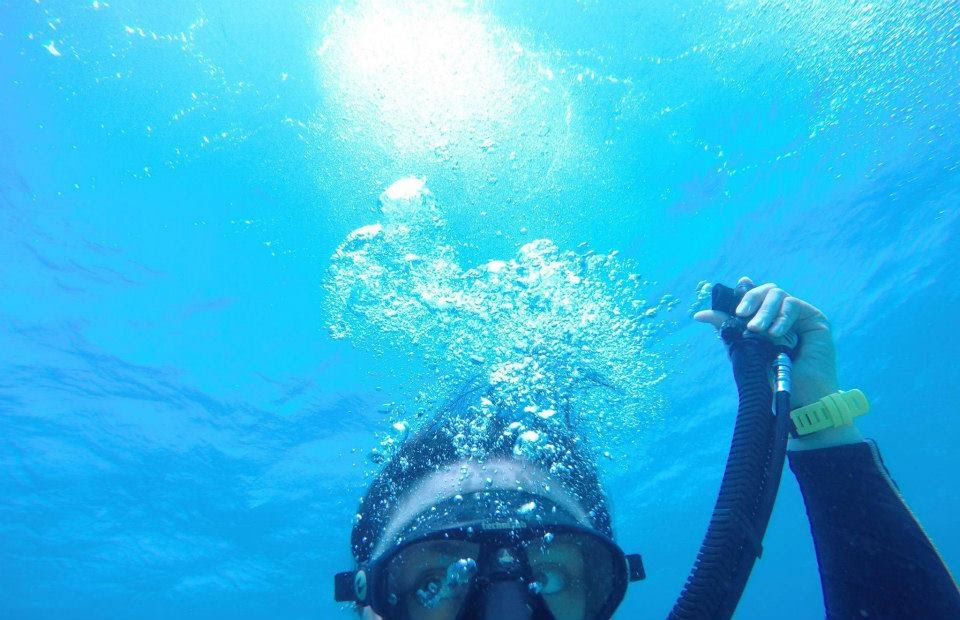 "Diving, while it is an “adventure sport,” takes people into a calm and quiet environment — there are no phones, no emails, no way for the terrestrial world to contact you. A diver can drift through the water, undisturbed, and enjoy a period of quiet. The only noises are the hiss of exhalations and the munching of parrotfish. Yes, diving is generally a buddy sport,but your buddy has a regulator in his mouth and can’t talk."" – Anonymous