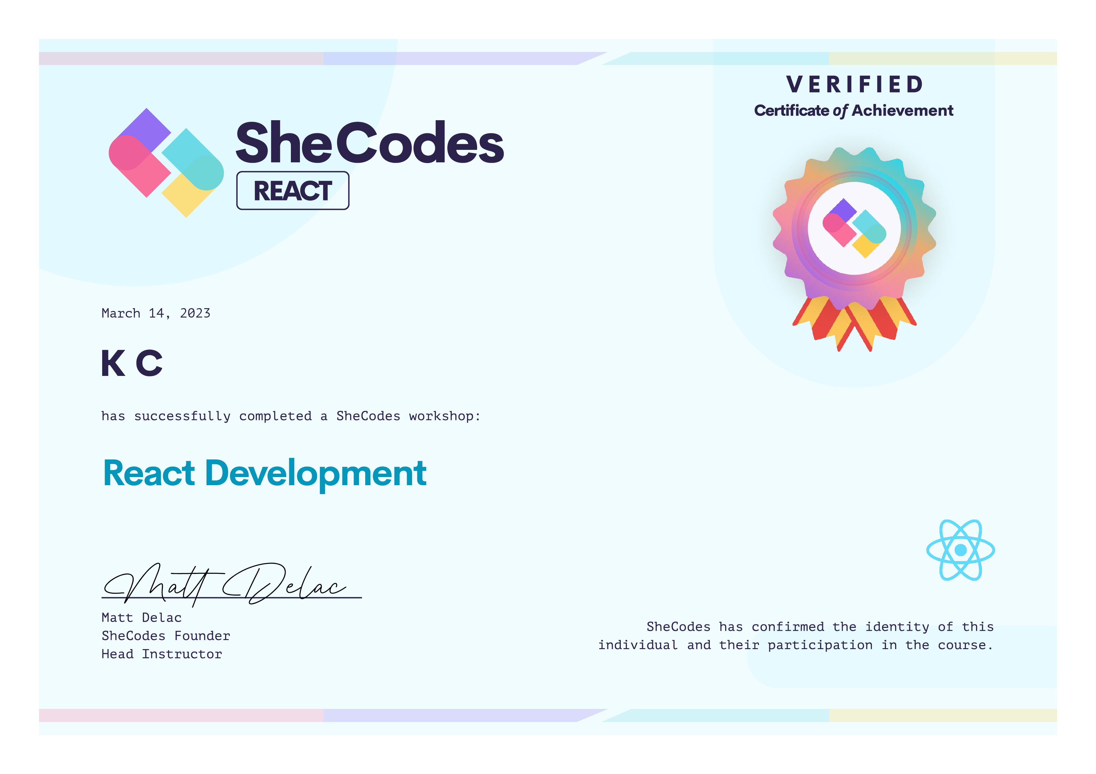 About SheCodes Verified Certificates