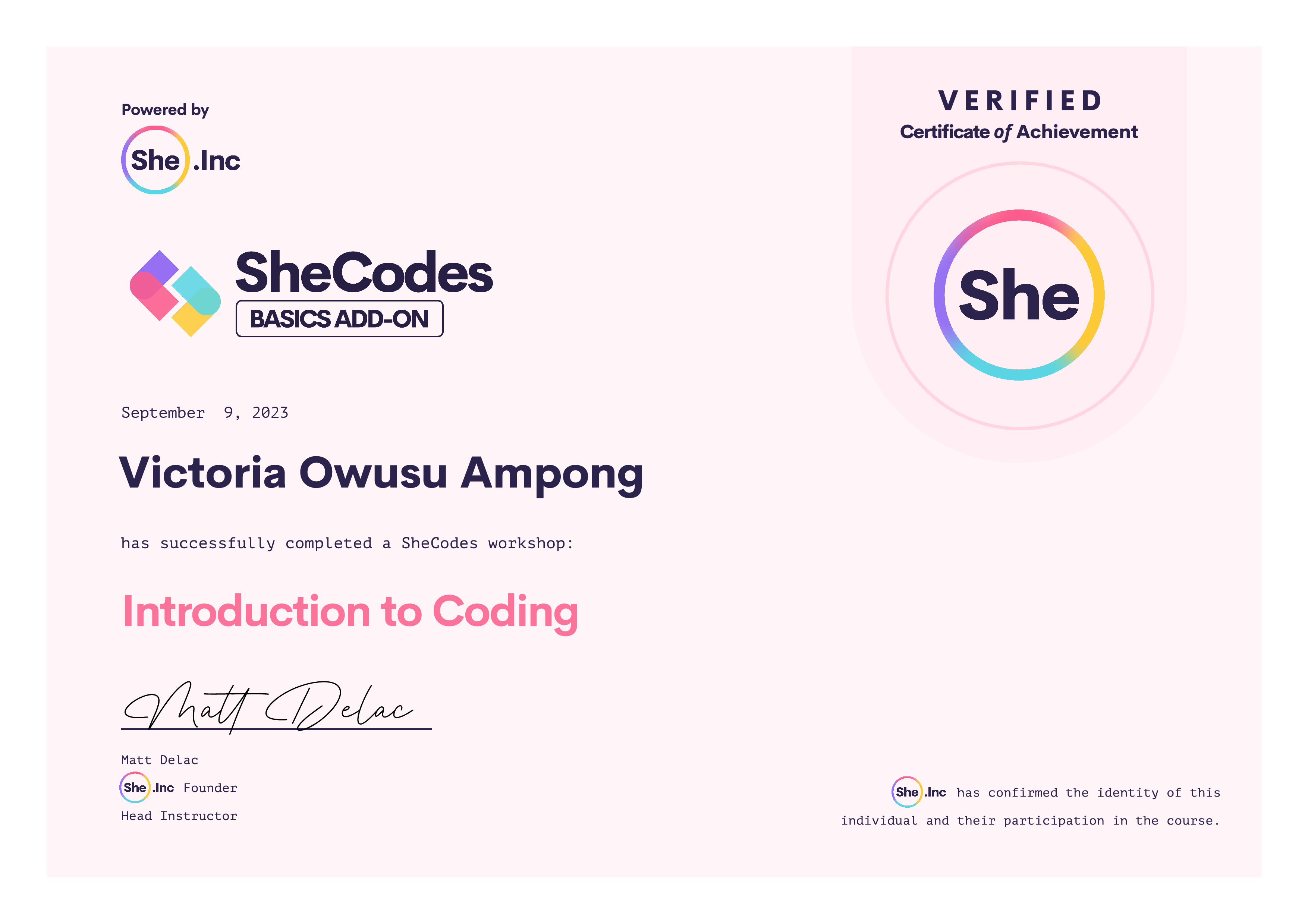 About SheCodes Verified Certificates