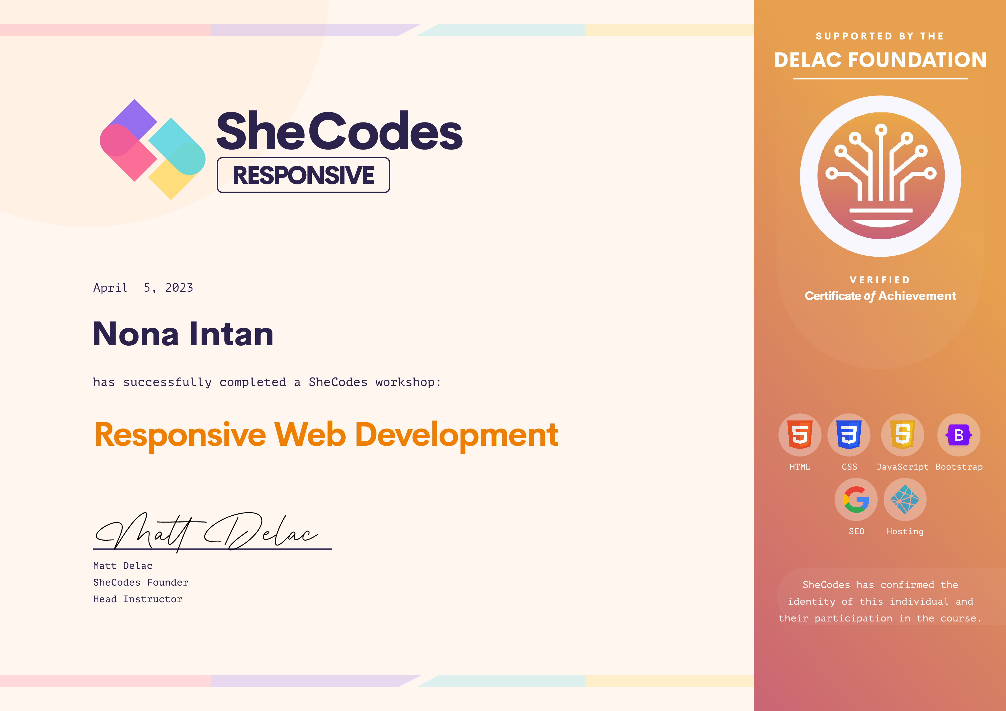 About SheCodes Verified Certificates