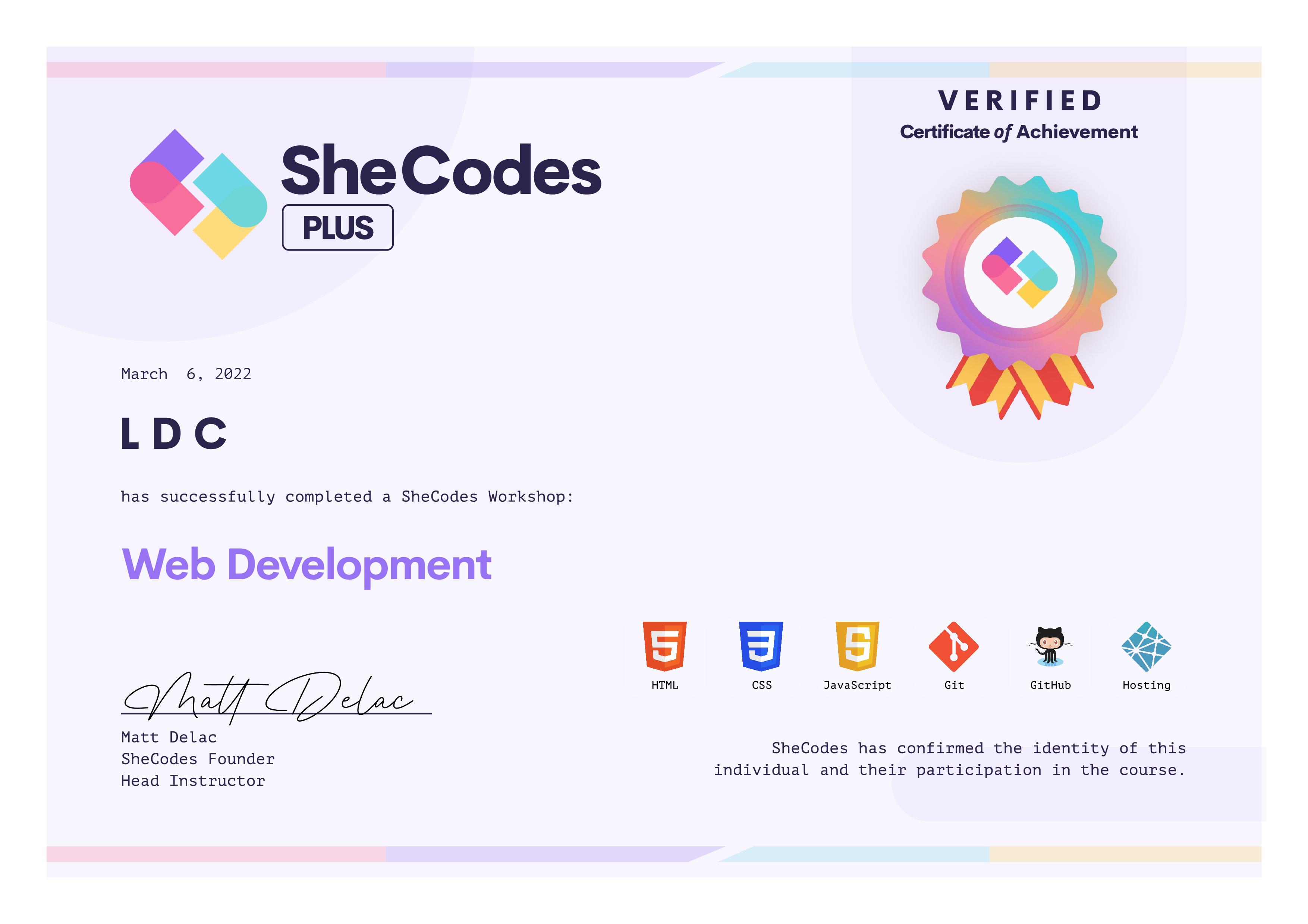 About SheCodes Verified Certificates