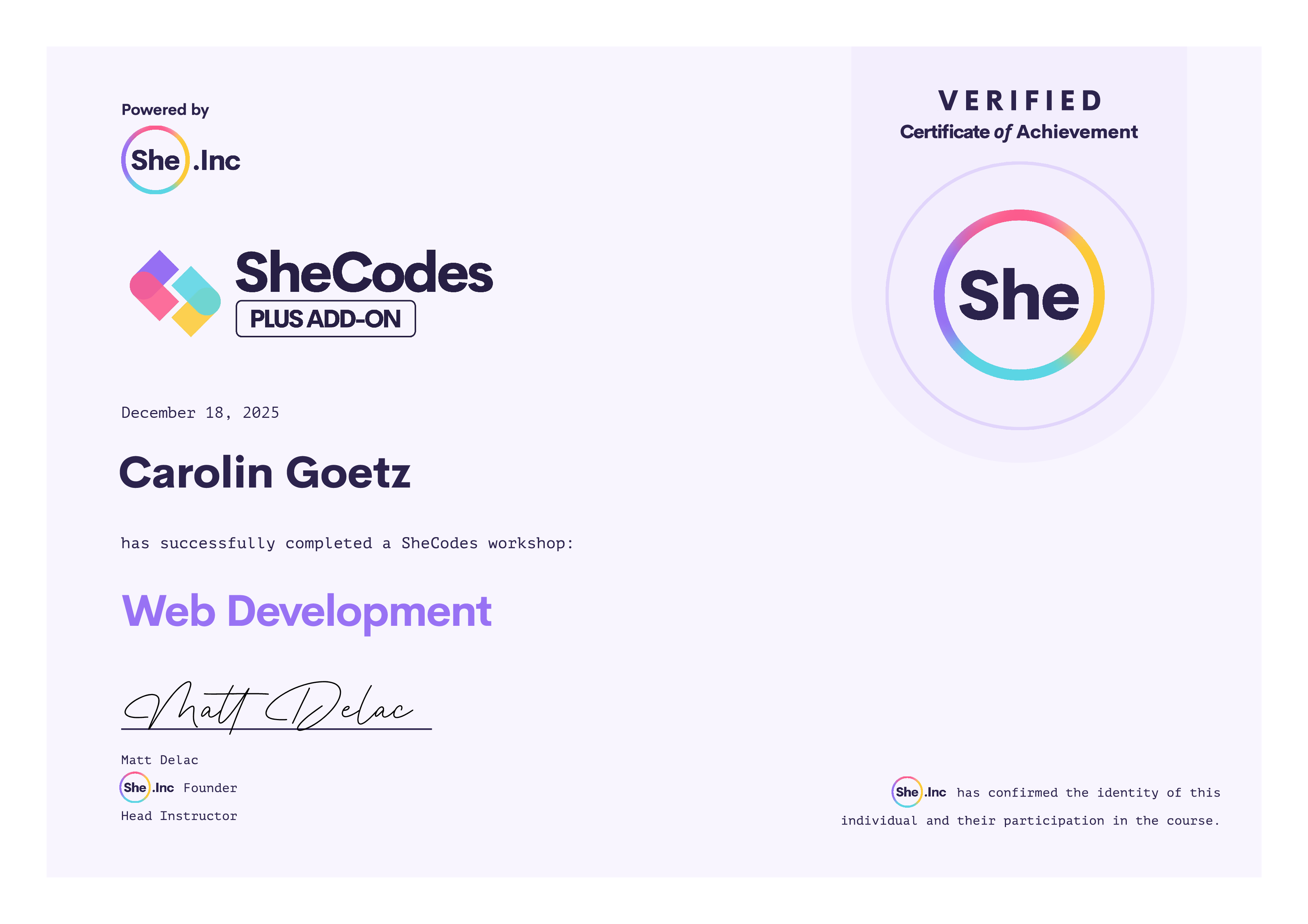 About SheCodes Verified Certificates