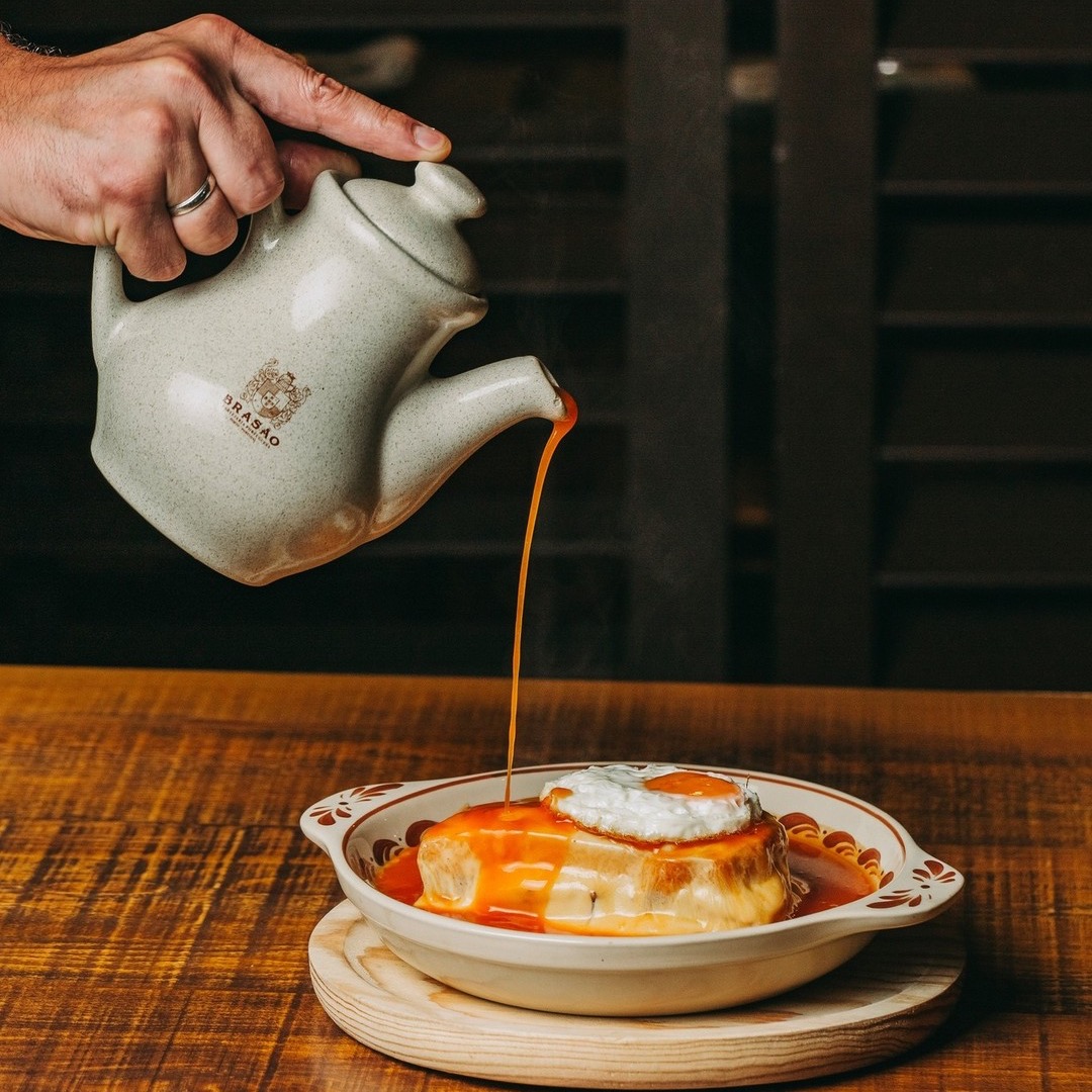 Traditionally associated with Porto, francesinha is a unique sandwich consisting of toasted bread, beef or pork, sausages, ham, and cheese, while the whole combination is then doused in a rich beer-infused tomato sauce. The sandwich has different variations that include mushrooms, chicken, or vegetables. Francesinha is not a sandwich you can enjoy on the go or as a quick snack; it is a wholesome meal that is usually found on the menus of traditional restaurants where it is served as a nutritious lunch or dinner. Among the numerous stories about its origin, one stands out, claiming that it was inspired by the famous croque-monsieur, a French sandwich enjoyed by many Portuguese immigrants. According to the story, a Portuguese immigrant Daniel David Silva first served the sandwich at the Regaleira restaurant. He adapted the French version with traditional Portuguese ingredients and created a dish that is today considered as one of the classics of Portuguese national cuisine. The sandwich is usually served with French fries on the side, and it is sometimes topped with a fried egg.