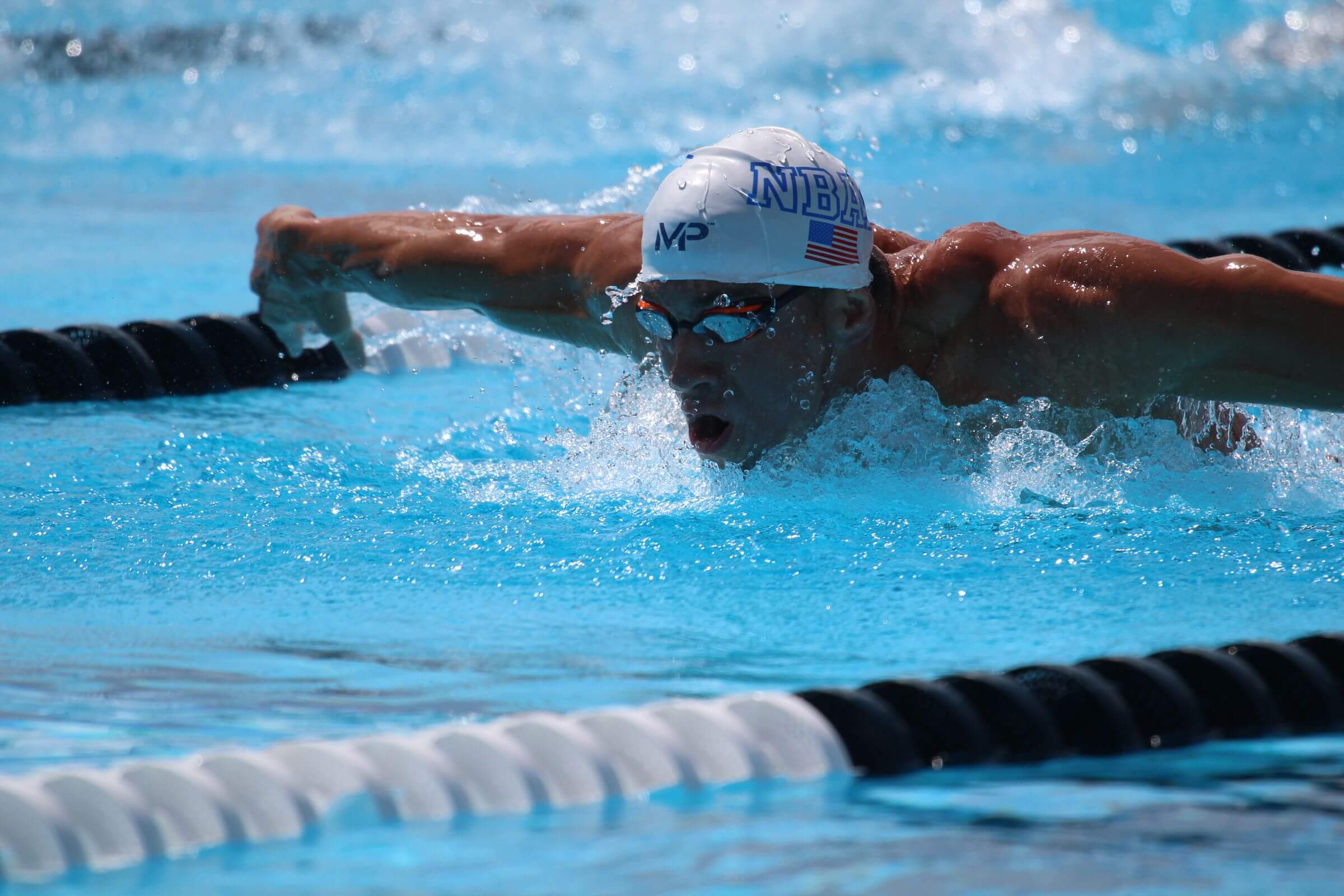 Butterfly: performed face down in the water. The legs perform a