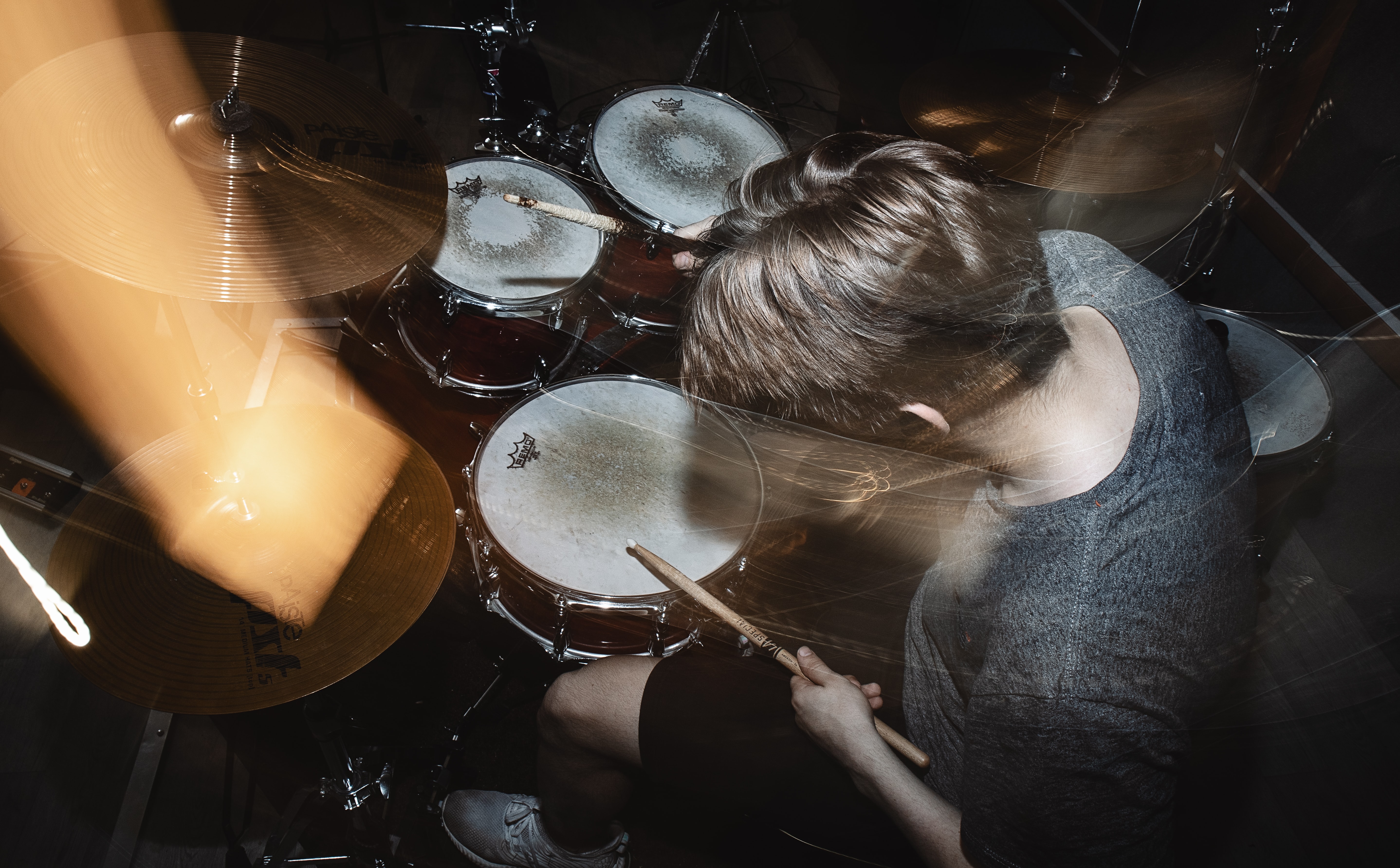A drum kit (also called a drum set, trap set, or simply drums) is a collection of drums, cymbals, and other auxiliary percussion instruments set up to be played by one person. Both hands of the player hold drum sticks, and their feet operate pedals that control the hi-hat and beater for the bass drum.