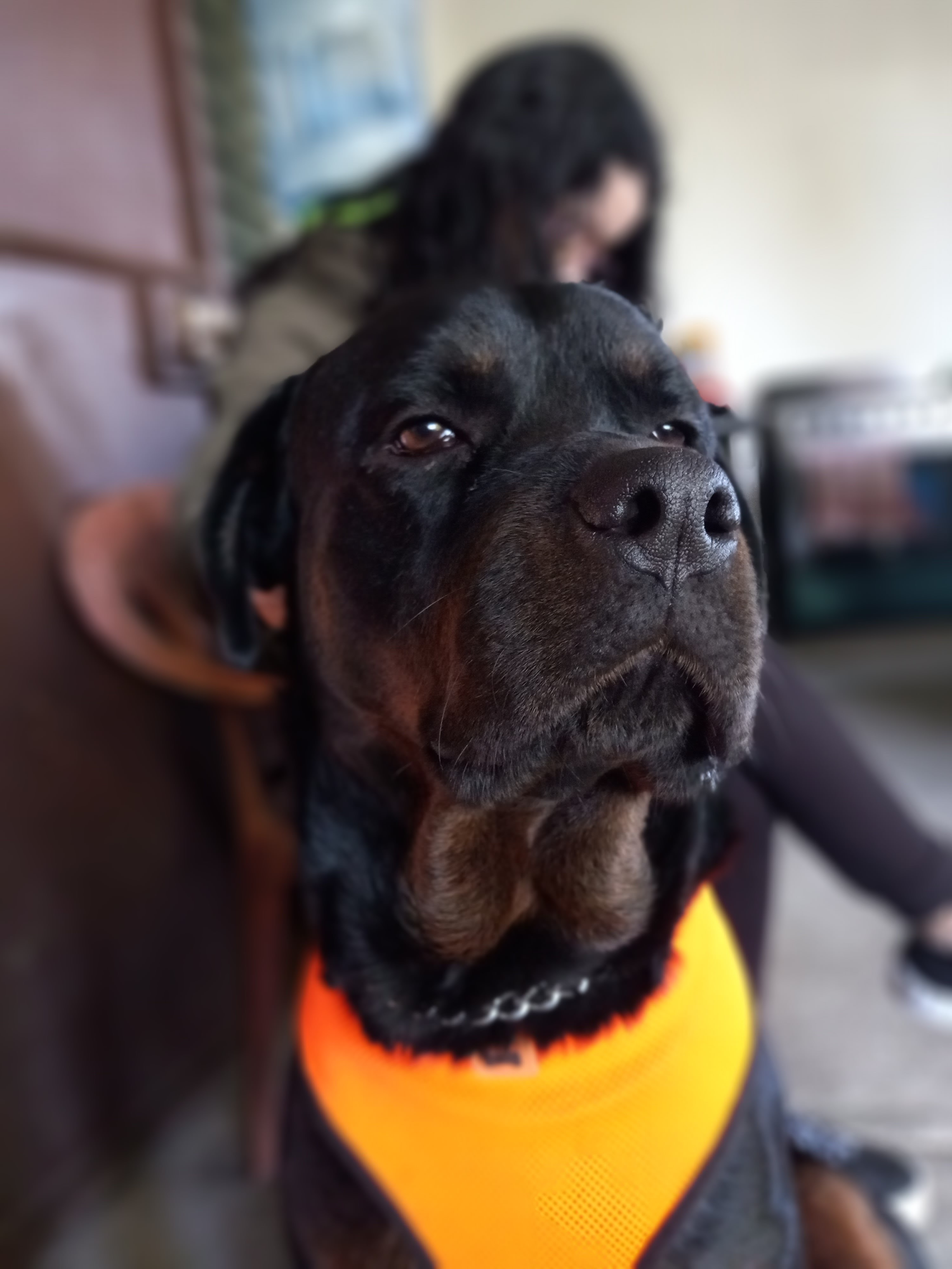 The Rottweiler is a robust working breed of great strength descended from the mastiffs of the Roman legions. A gentle playmate and protector within the family circle, the Rottie observes the outside world with a self-assured aloofness. A male Rottweiler will stand anywhere from 24 to 27 muscular inches at the shoulder; females run a bit smaller and lighter. The glistening, short black coat with smart rust markings add to the picture of imposing strength. American Kennel Club