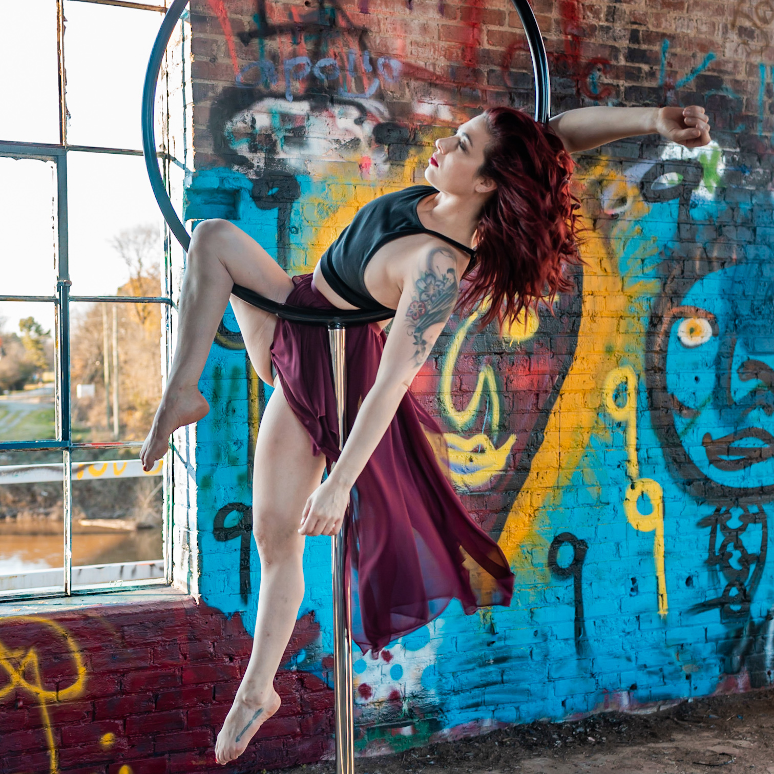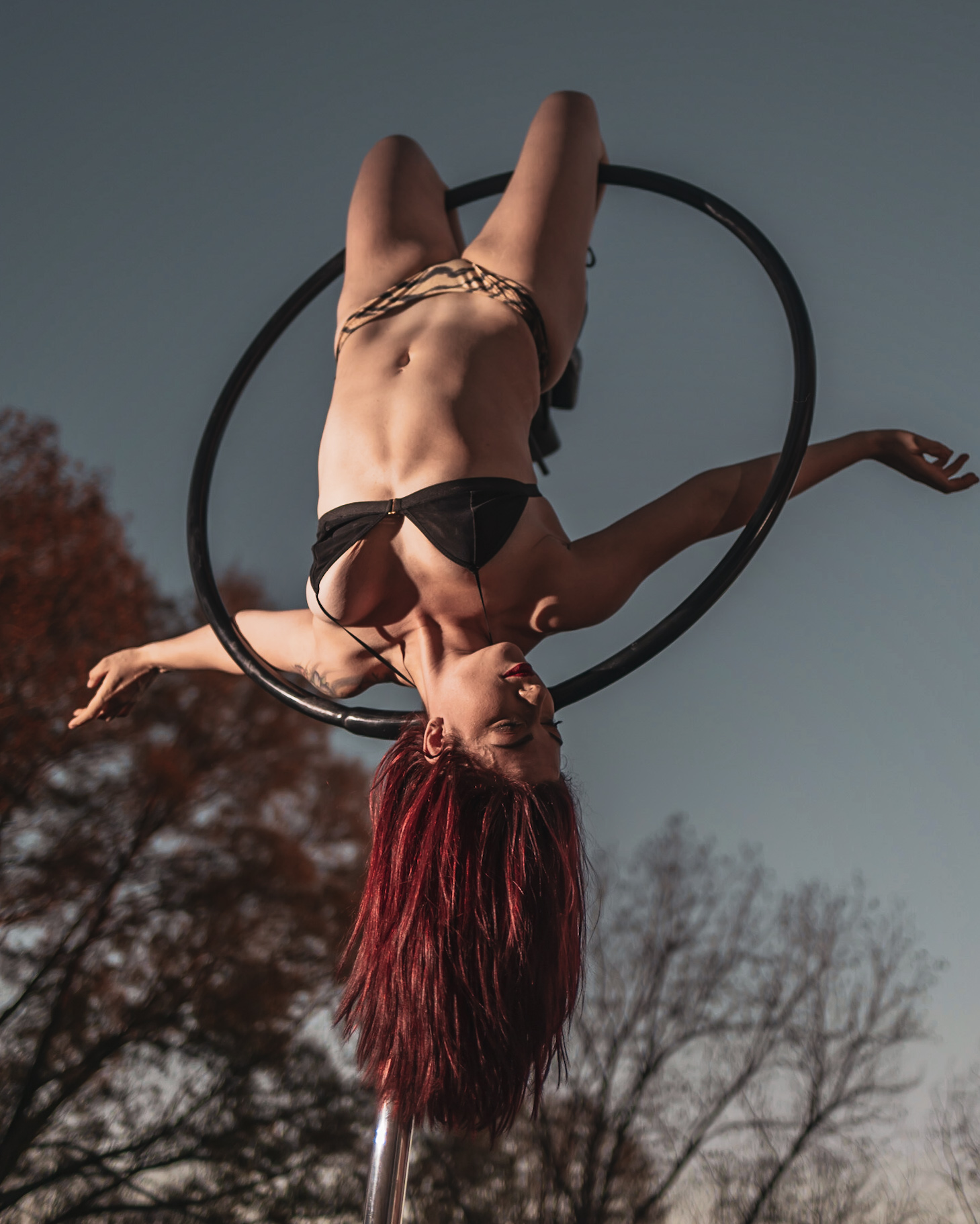 ceiling, on which circus artists may perform aerial acrobatics. It can