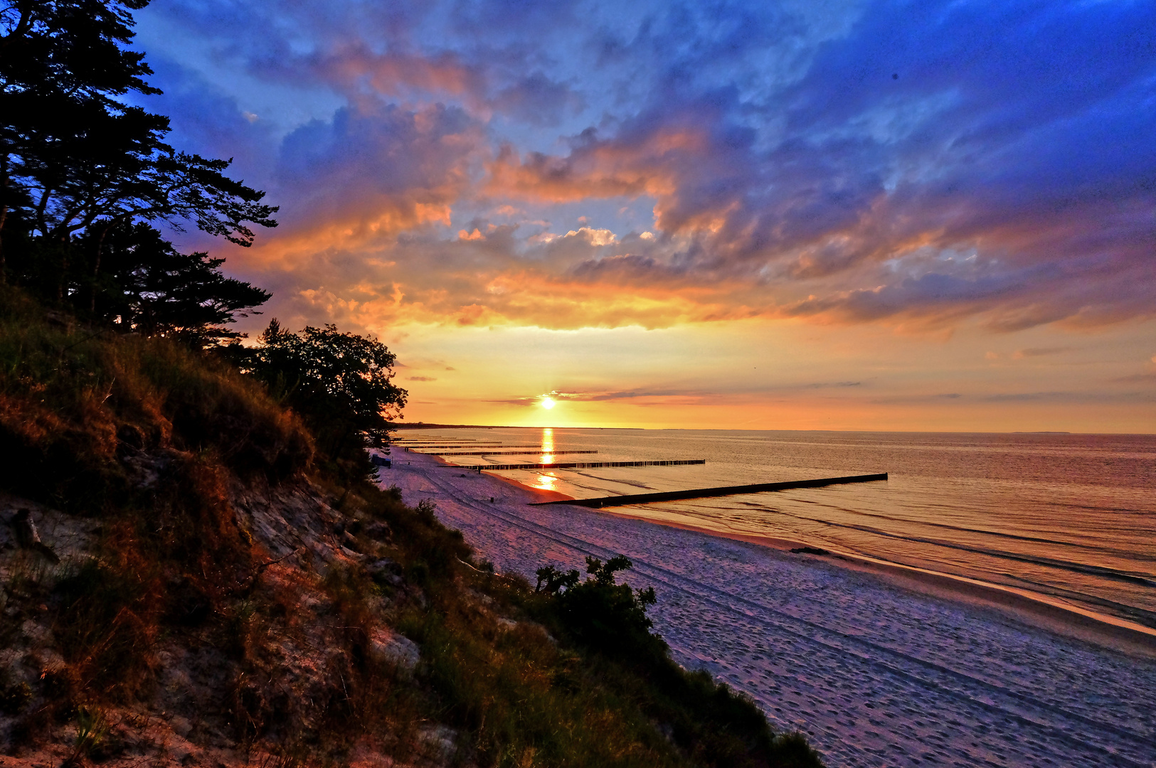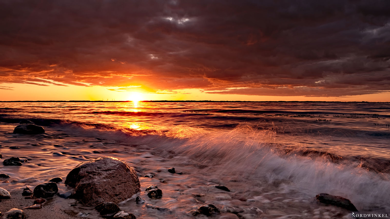 Sunset, also known as sundown, is the daily disappearance of the Sun below the horizon due to Earth's rotation. As viewed from everywhere on Earth (except the North and South poles), the equinox Sun sets due west at the moment of both the spring and autumn equinoxes. As viewed from the Northern Hemisphere, the Sun sets to the northwest (or not at all) in the spring and summer, and to the southwest in the autumn and winter; these seasons are reversed for the Southern Hemisphere.