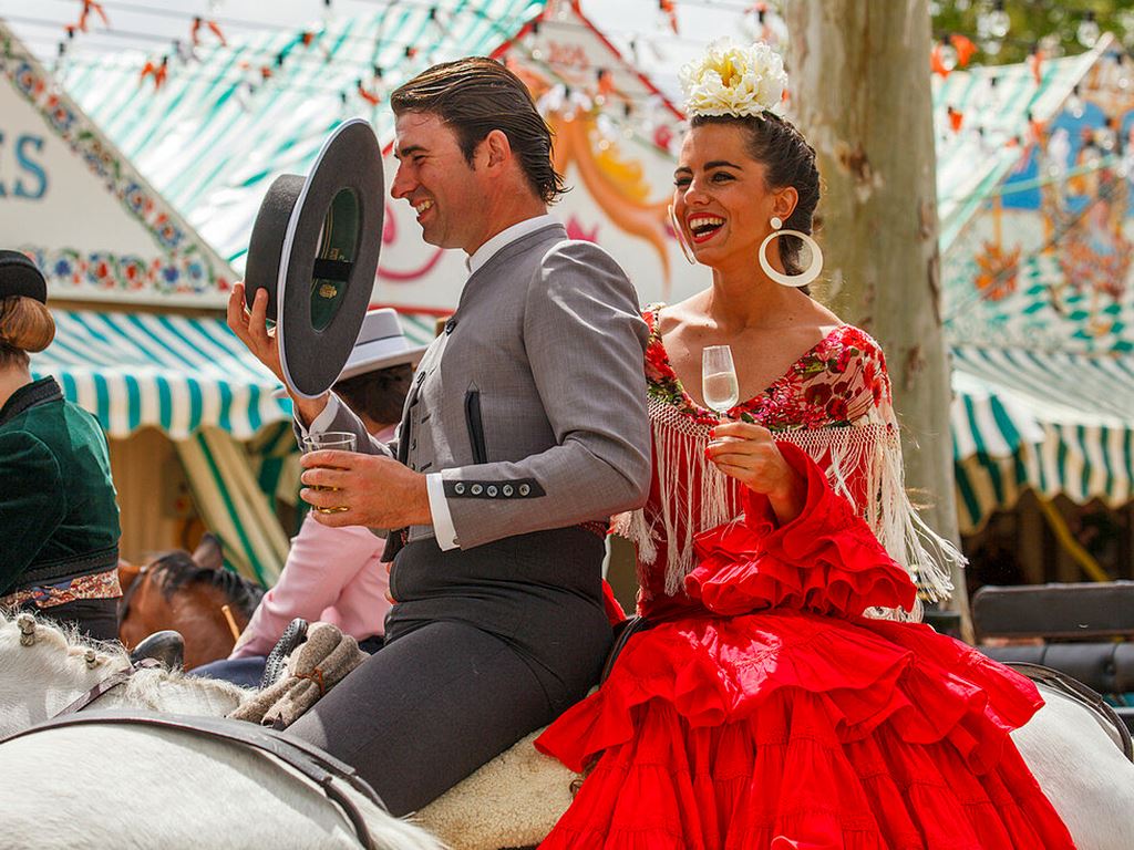 The Seville Fair is held in the Andalusian capital of Seville, Spain. The fair generally begins two weeks after the Semana Santa, or Easter Holy Week. For the duration of the fair, the fairgrounds and a vast area on the far bank of the Guadalquivir River are totally covered in rows of casetas (individual decorated marquee tents which are temporarily built on the fairground). These casetas usually belong to prominent families of Seville, groups of friends, clubs, trade associations and political parties. From around nine at night until six or seven the following morning, at first in the streets and later only within each caseta, there are crowds partying and dancing sevillanas, drinking Sherry, manzanilla or rebujito, and eating tapas. This fair also has an amusement park that comes with it and has many games to play along with roller coasters to ride. More information