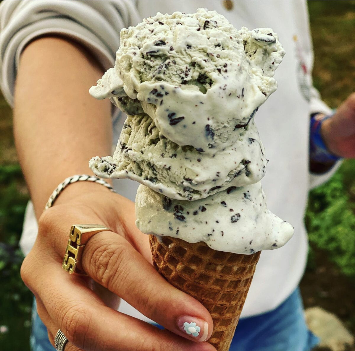Mint chocolate chip is an ice cream flavor composed of mint ice cream with small chocolate chips. In some cases the liqueur crème de menthe is used to provide the mint flavor, but in most cases peppermint or spearmint flavoring is used. Food coloring is usually added to make it green, but it may be beige or white in "all natural" or "organic" varieties. According to the International Dairy Foods Association (IDFA), 3% of all ice cream sold in 2000 was mint chocolate chip, making it the 10th-most popular flavor of ice cream.[citation needed] In a July 2017 survey by IDFA, mint chocolate chip was ranked as America's 4th most popular ice cream flavor.[1] Because of its popularity, the flavor is used in other foods such as cookies and meringues. Ice cream manufacturer Baskin-Robbins has created a hard candy named "mint chocolate chip" that tastes similar to their ice cream of the same name (which is one of their "permanent flavors").[2] Some brands name it chocolate (or choco) chip mint, mint 'n chip, or just mint chip.