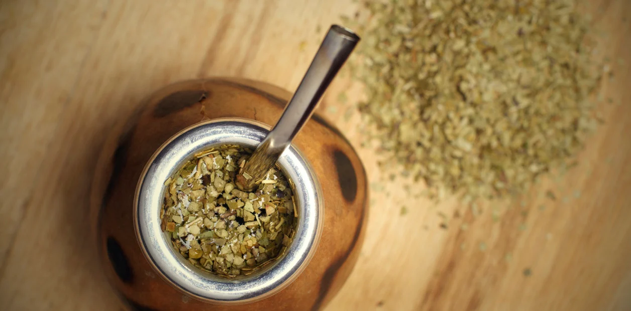 Mate is a traditional drink in some countries of South America, especially in Argentina, Paraguay, Uruguay and the South of Brazil. The drink, which contains mateine (an analog of caffeine), is made by an infusion of dried leaves of yerba mate. It is usually drunk with friends and served in a hollow bottle gourd with a "bombilla", a special metallic drinking straw, which functions also as a sieve.