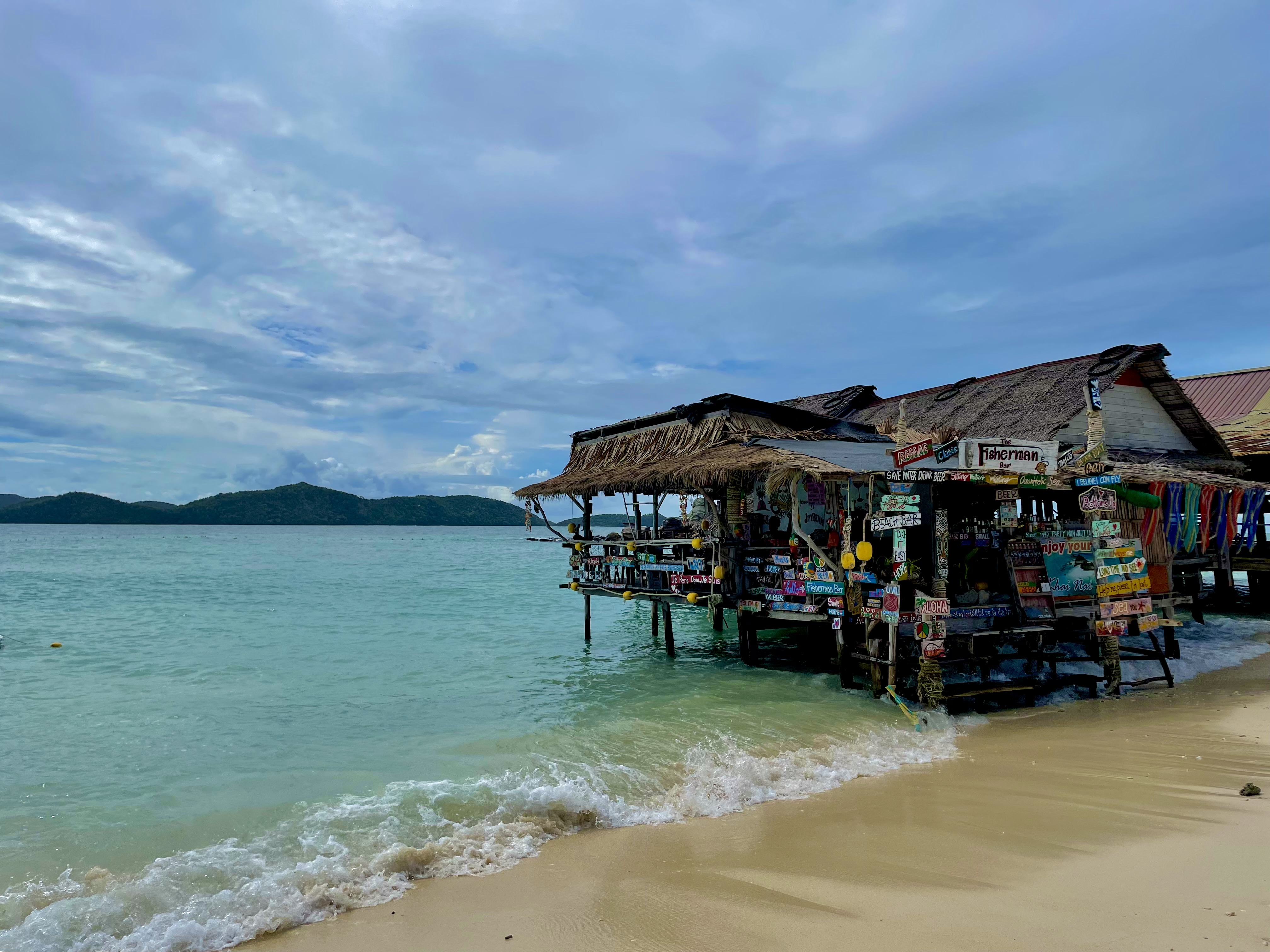 One of the coolest bars built right above the tide and lots of cats lazing around, enjoying the sunshine. A great place to kick back and relax after a swim in the warm waters of Khai Nai.