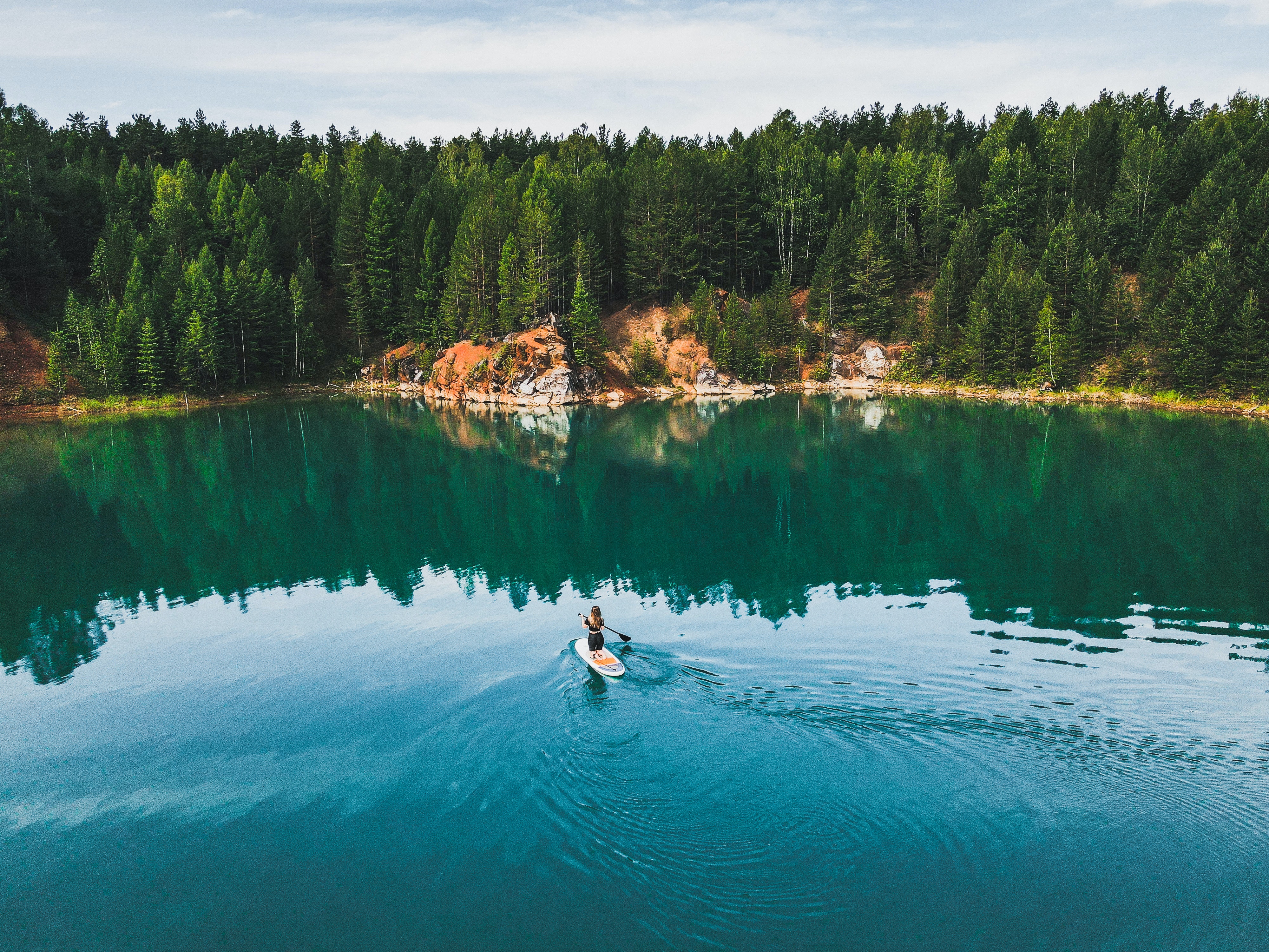 Standup paddleboarding (SUP) is a water sport born from surfing with modern roots in Hawaii. Stand up paddleboarders stand on boards that are floating on the water, and use a paddle to propel themselves through the water. The sport was documented in a 2013 report that identified it as the outdoor sporting activity with the most first-time participants in the United States that year. Variations include flat water paddling, racing, surfing, whitewater SUP, yoga, and fishing.