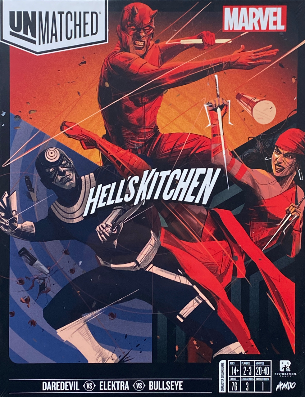 Unmatched: Hell's Kitchen features three characters from the Marvel comics universe: Daredevil, Elektra, and Bullseye.