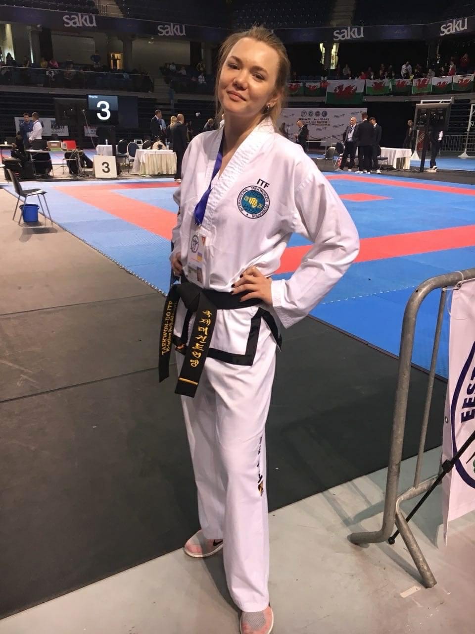 Taekwondo is a Korean form of martial arts involving punching and kicking techniques, with emphasis on head-height kicks, spinning jump kicks, and fast kicking techniques. The literal translation for tae kwon do is "kicking", "punching", and "the art or way of".They are a kind of martial arts in which one attacks or defends with hands and feet anytime or anywhere, with occasional use of weapons. The physical training undertaken in Taekwondo is purposeful and fosters strength of mind through mental armament.