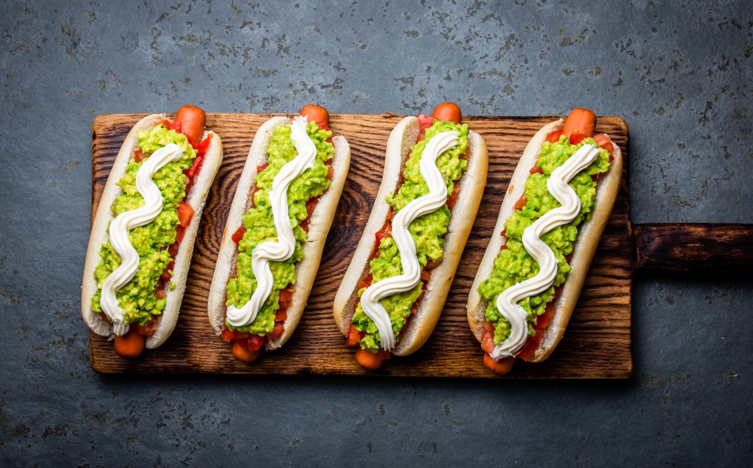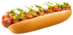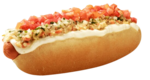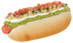 hot dog variation eaten in Chile, usually served with ingredients such as