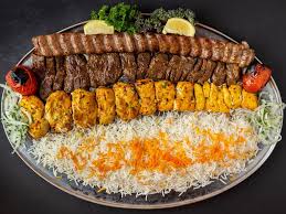 Kabab koobideh is grilled on wide, flat skewers, traditionally over hot coals, and is served with chelow (plain white
