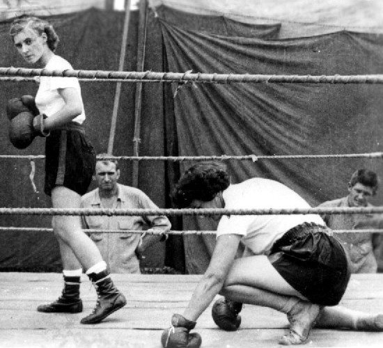 Annie Newton was London's first and principal woman boxer, claimed during her time to be “the greatest woman boxer in the world."[1]On Monday 8 February 1926, an exhibition match of six rounds was arranged at the Hoxton Baths between Newton and Madge Baker.[2] Baker was the other woman boxer in England and a student of Digger Stanley.[1][2][5] The promoter, Harry Abrahams, later stated that it was not billed as a contest but was meant to be a novelty.[5] News of the event caused outrage and protest. Plans were made to summon a 'town's indignation meeting' of local representatives with the aim of preventing the match.[5] The campaign to stop the match was led by the Mayor of Hackney, Rev. W. Evans, who wrote to the Daily News "I regard this proposed exhibition of women boxers as a gratification of the sensual ideals of a crowd of vulgar men."[5] Evans appealed to the Home Secretary Sir William Joynson-Hicks. The Home Secretary replied "I should have no power to interfere, mainly, I think, because the Legislature never imagined that such a disgraceful exhibition would have been staged in this country...I hope and trust that the influence of decent public opinion will prevent such an outrage taking place."[5] (source: Wikipedia)