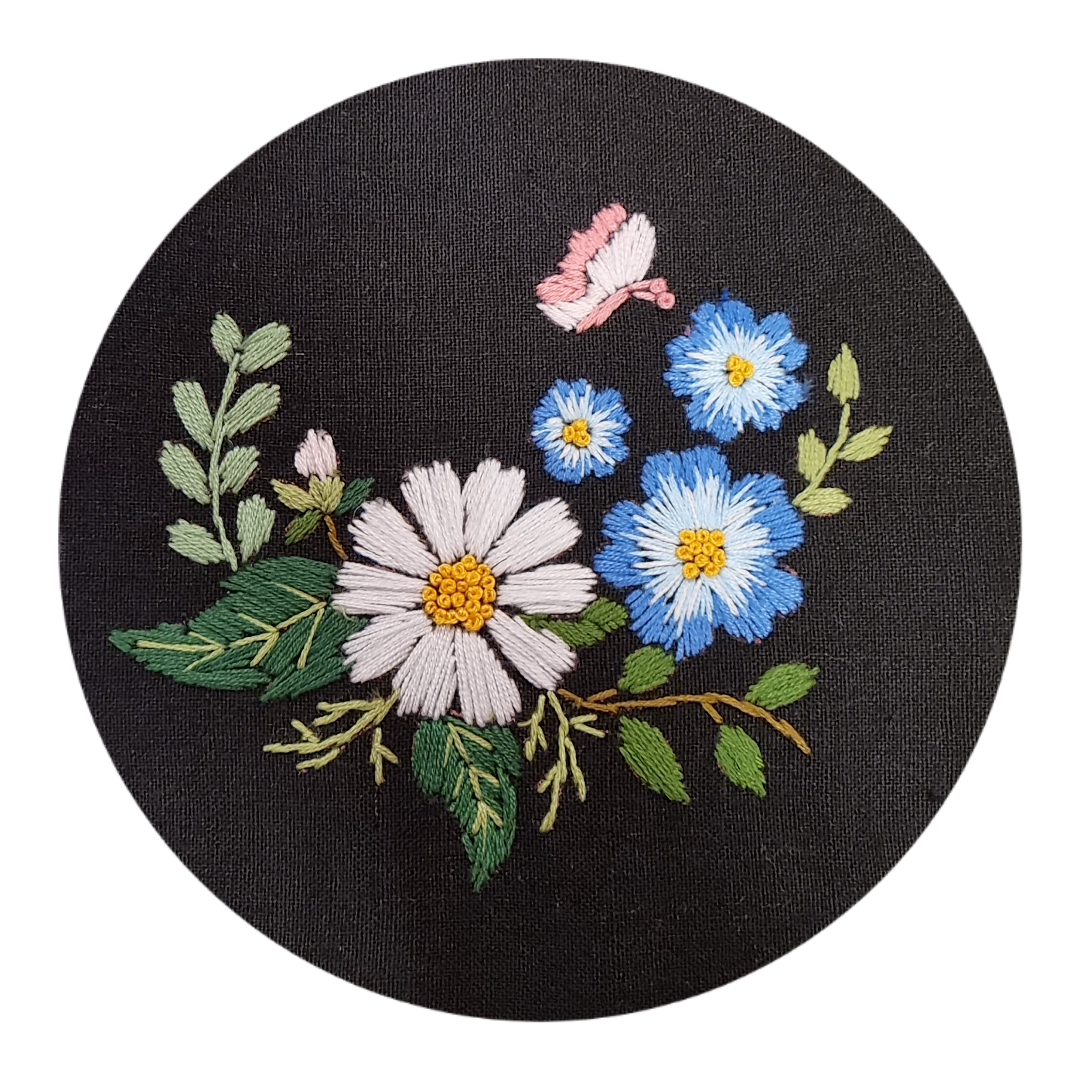 needle to apply thread or yarn. Embroidery may also incorporate other