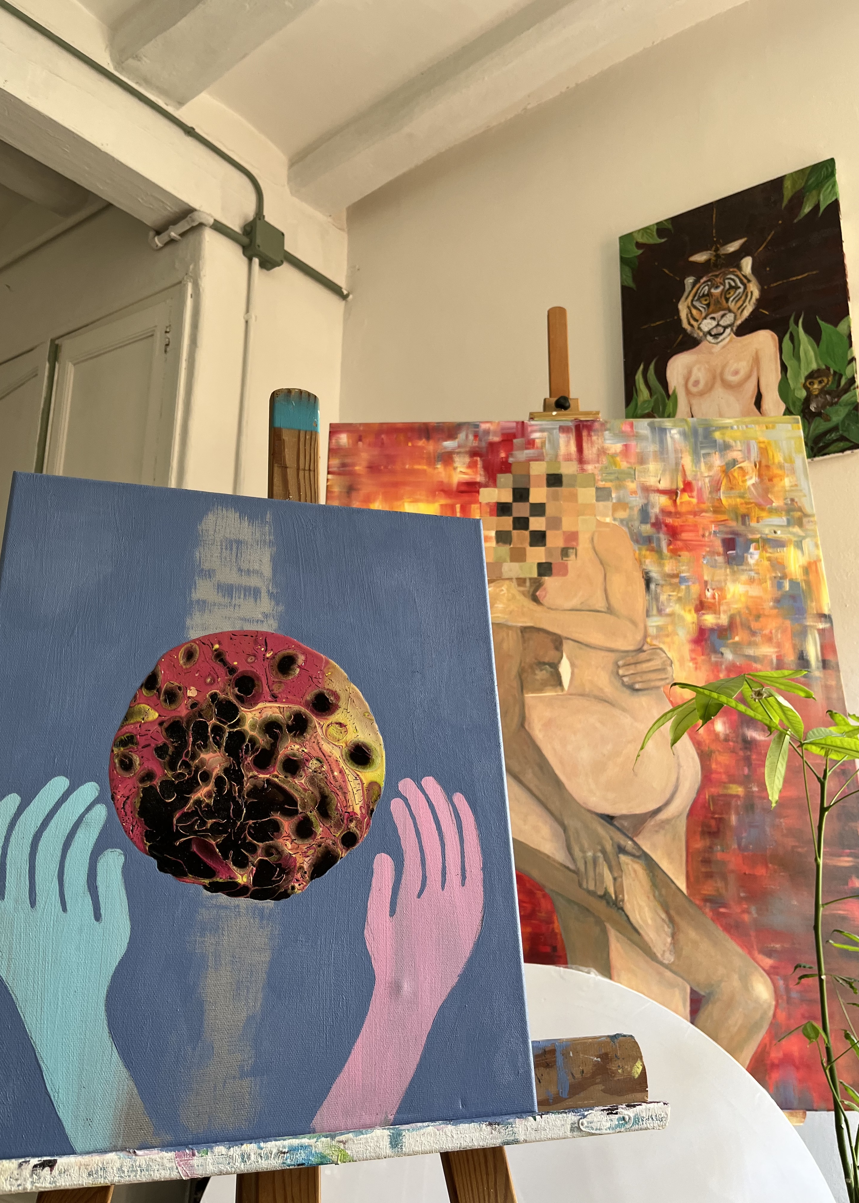 Painting is the art or process of applying paints to a surface such as canvas, to make a picture or other artistic composition. The noun painting also refers to the end product – a composition or picture made in this way.