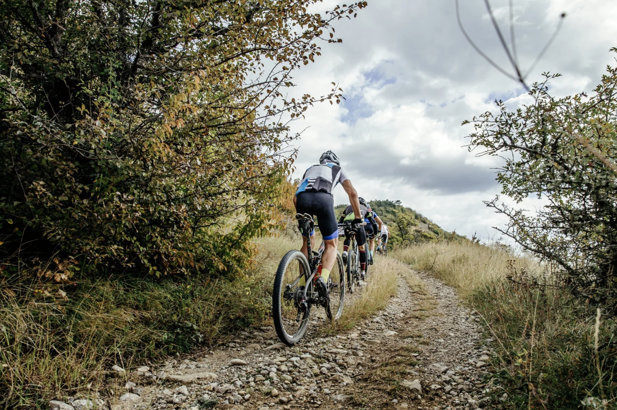 Mountain biking is a sport of riding bicycles off-road, often over rough