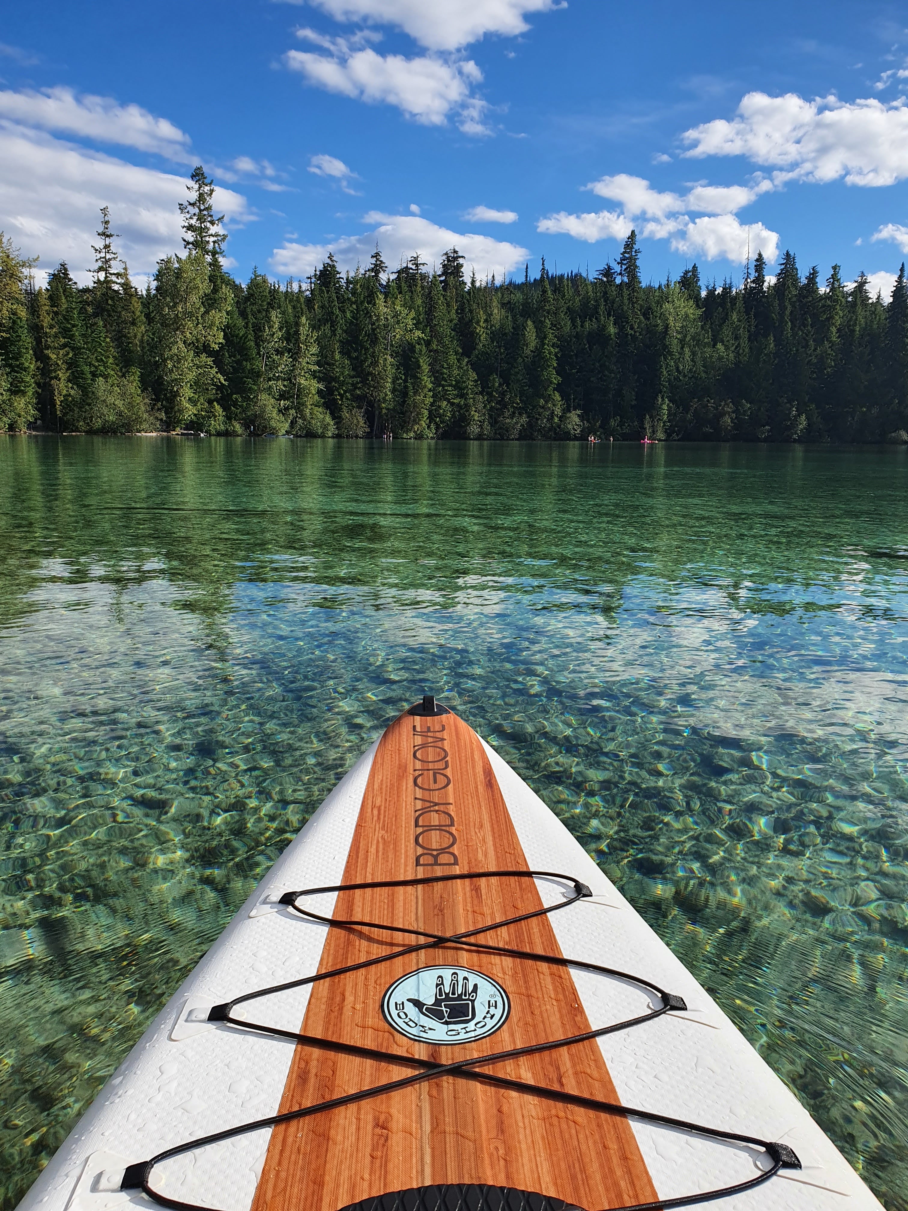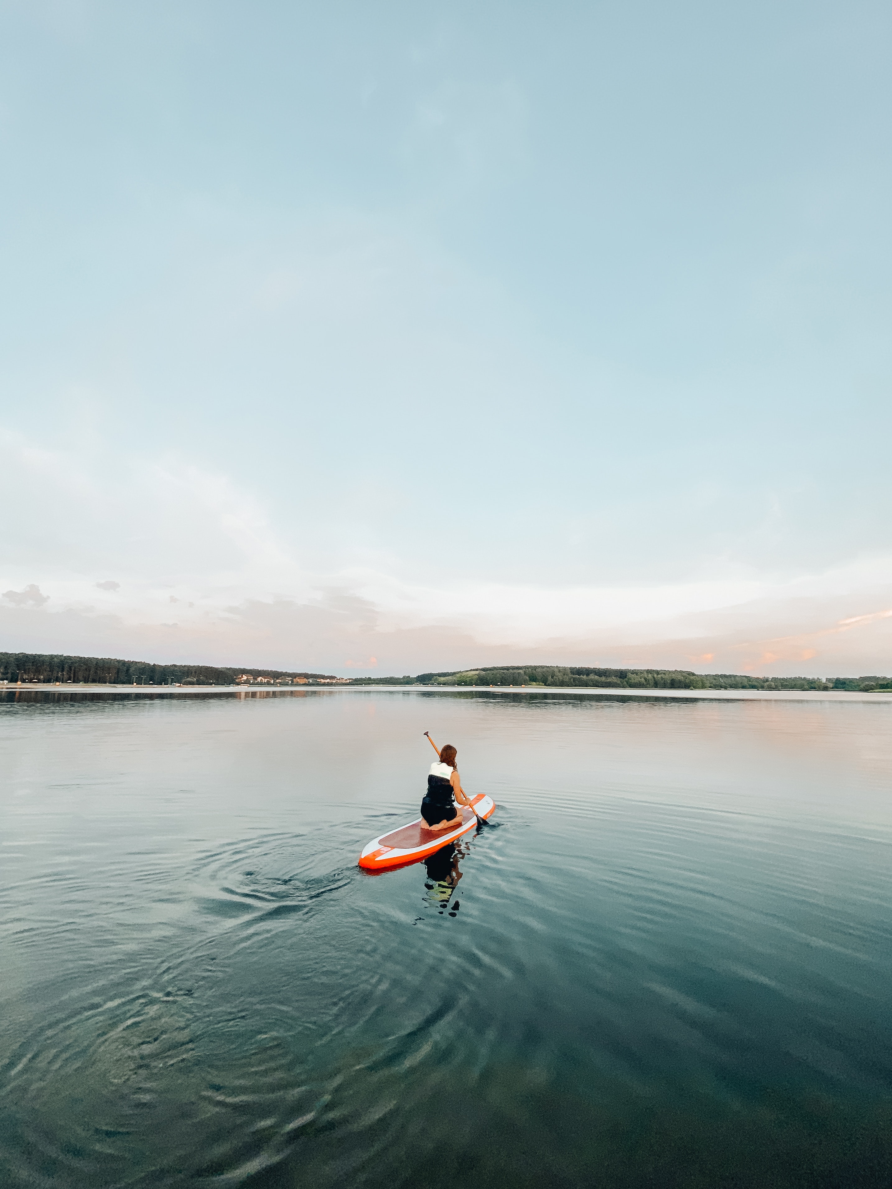 Paddleboarding is a water sport in which participants are propelled by a swimming motion using their arms while lying or kneeling on a paddleboard or surfboard in the ocean or other body of water. A derivative of paddleboarding is stand up paddleboarding also called stand up paddle surfing.
