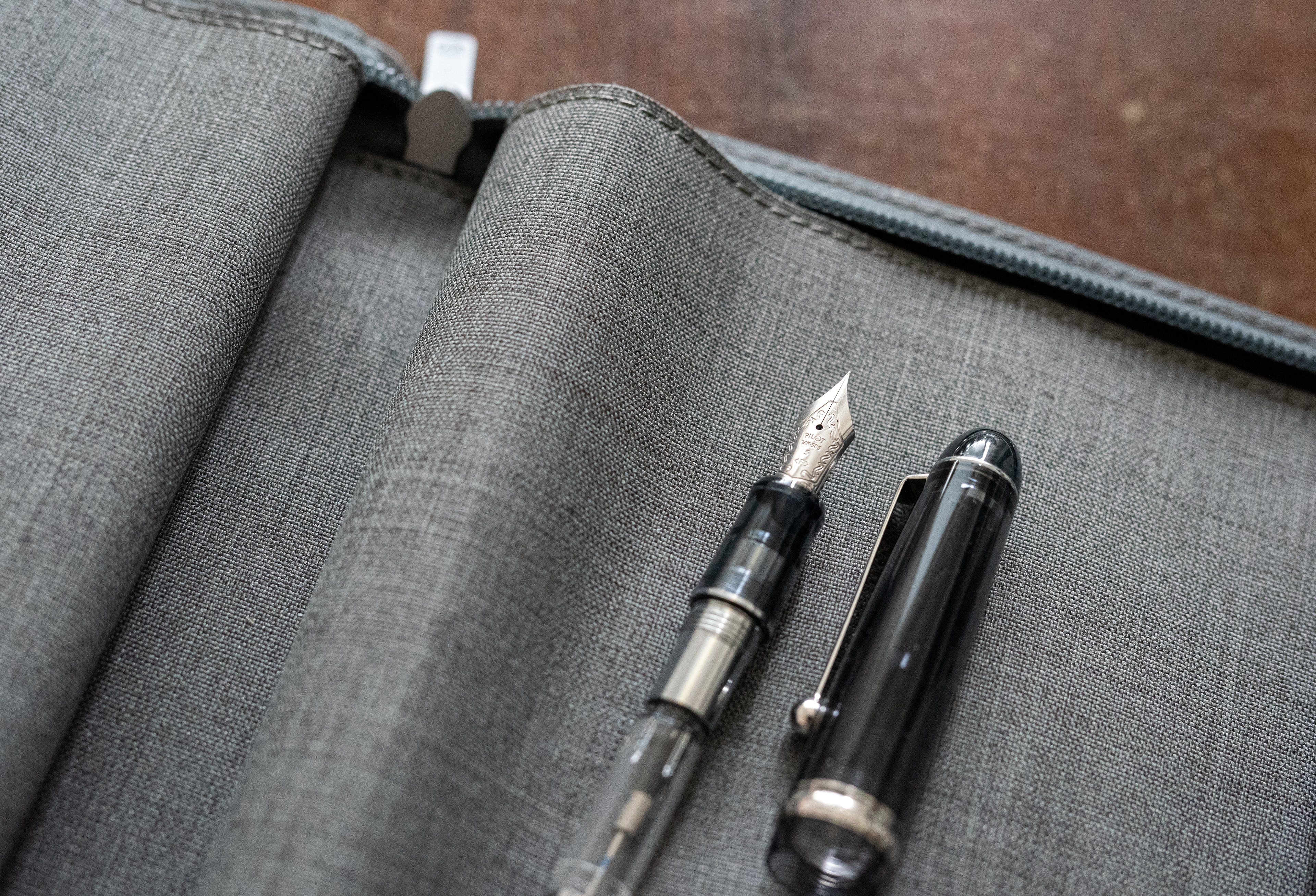 A fountain pen is a writing instrument which uses a metal nib to apply a
