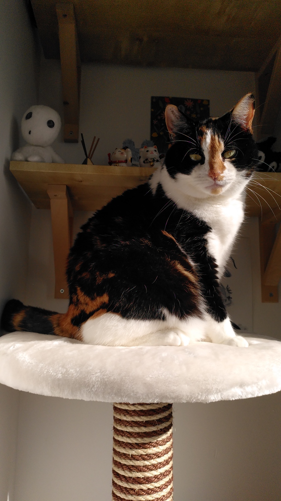 Poppy was housed in a foster home after she was found to be too stressed living in a busy household in her original home. She now enjoys a more peaceful life with me and has plenty of space for her alone time. Though she's the more independent type, she'll seek company at the end of the day by jumping up on your bed to sleep with you. She also enjoys spending time in the garden shed during rainy weather.