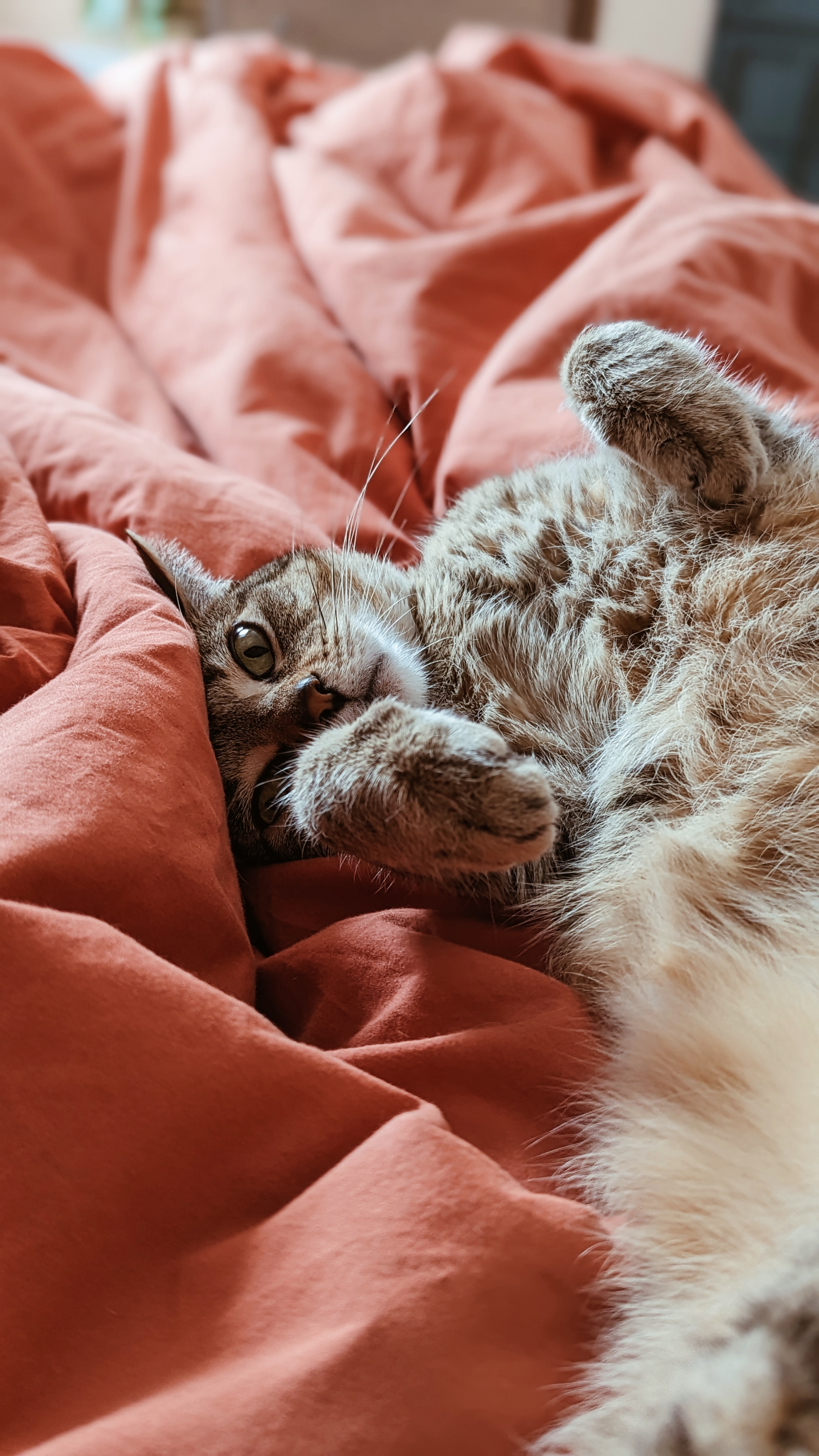 Phoebe is a bit timid and shy but has a heart full of love. She adores treats and can't resist cuddling up with her favorite humans. A mischievous side of Phoebe emerges when she's in playful mode, as she enjoys chasing her humans' toes with great enthusiasm.