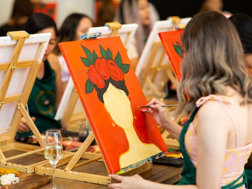 Painting is the practice of applying paint, pigment, color or other medium to a solid surface. The medium is commonly applied to the base with a brush, but other implements, such as knives, sponges, and airbrushes, can be used. In art, the term "painting" describes both the act and the result of the action.