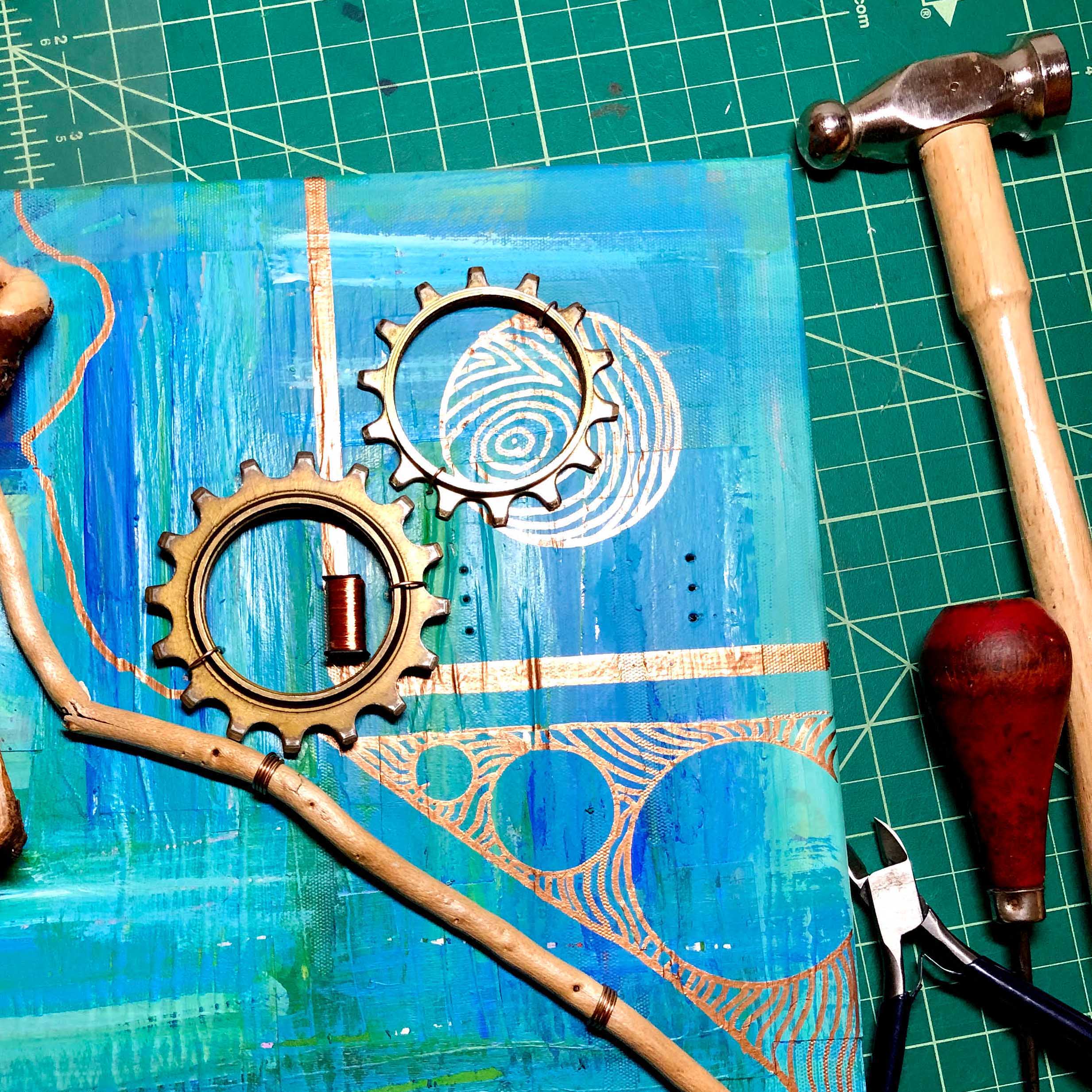 Mixed media art describes any art that uses more than one medium or material to make a work of art. Often, both traditional art materials (like paints, markers, pens, etc.) and additional elements can be incorporated to push the boundaries of more traditional art practices. In any given piece, you might find rope, wood, wallpaper, fabric, photos, paper, metal work, and any number of found objects. One of the advantages of mixed media art is that that are no rules or traditions that need to be followed, and a person doesn’t need any special training or technique to start creating. Another huge advantage of mixed media art is that it often transforms art that might begin on a traditional two-dimensional surface (like a canvas) into three dimensions. Mixed media art is often layered and textured, allowing an artist to create interesting visual effects without years of practicing a particular technique. Finally, mixed media art is a perfect fit for an artist who is concerned about their environmental impact, since mixed media artists are often able to reuse things that would otherwise be thrown in a landfill or find or develop less toxic or resource-intensive materials than traditional paints, inks, papers, and canvases. Although no specialized techniques are needed, many people new to mixed media art enjoy getting a few great ideas to get inspired and get started.