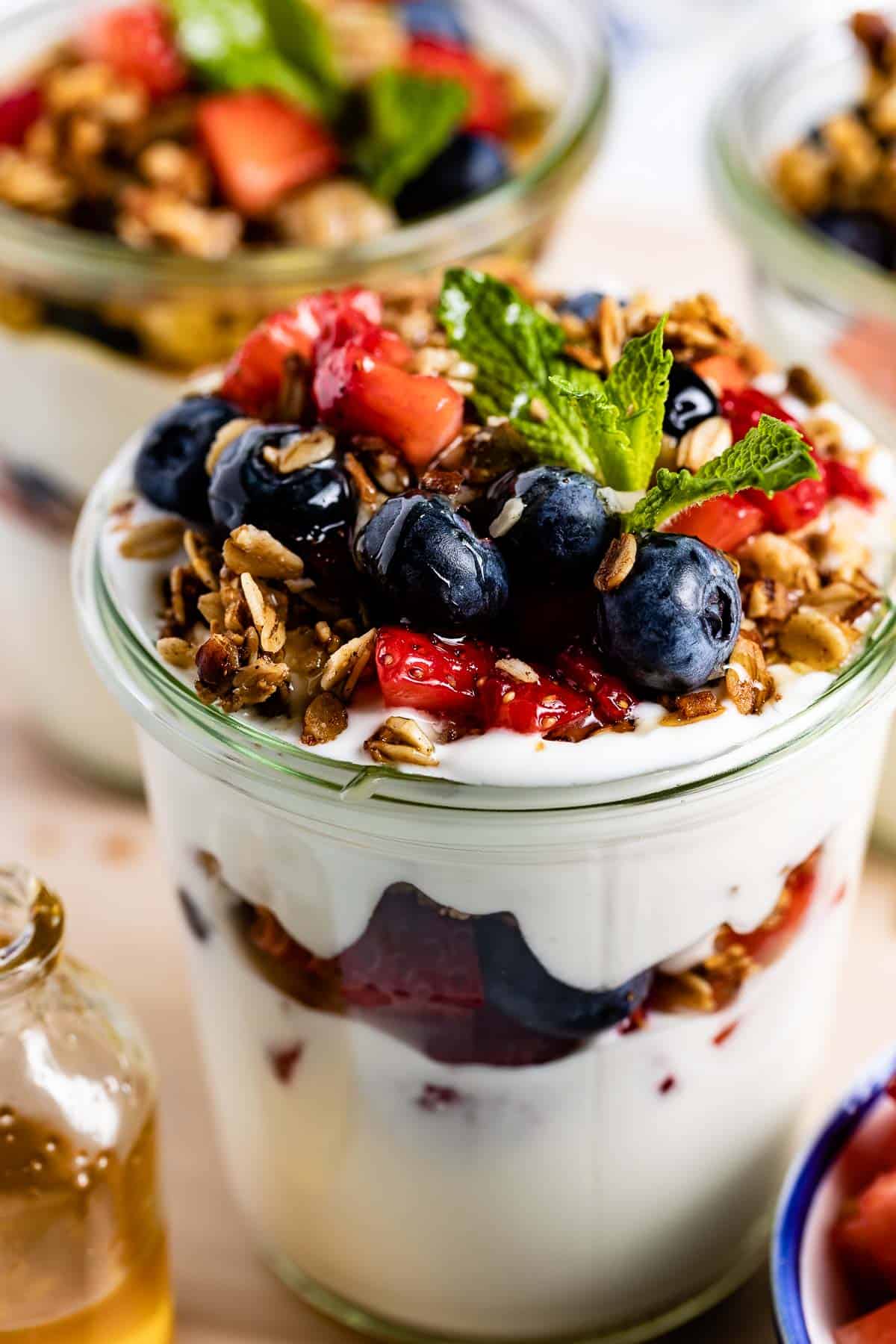 Greek yogurt is a yogurt that has been strained to remove most of its whey, resulting in a thicker consistency than normal unstrained yogurt, while still preserving the distinctive sour taste of yogurt. Like many types, strained yogurt is often made from milk enriched by boiling off some waer content, or by adding extra butterfat and powdered milk. In Europe and North America, it is often made from low-fat or fat-free cow's milk. In iceland, a smiliar product named skyr is made.