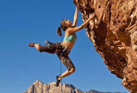 Sport lead climbing relies on fixed bolts for protection along a predefined route. The lead climber ascends the route with the rope tied to his or her harness and clips into each bolt or quickdraw to protect against a fall.