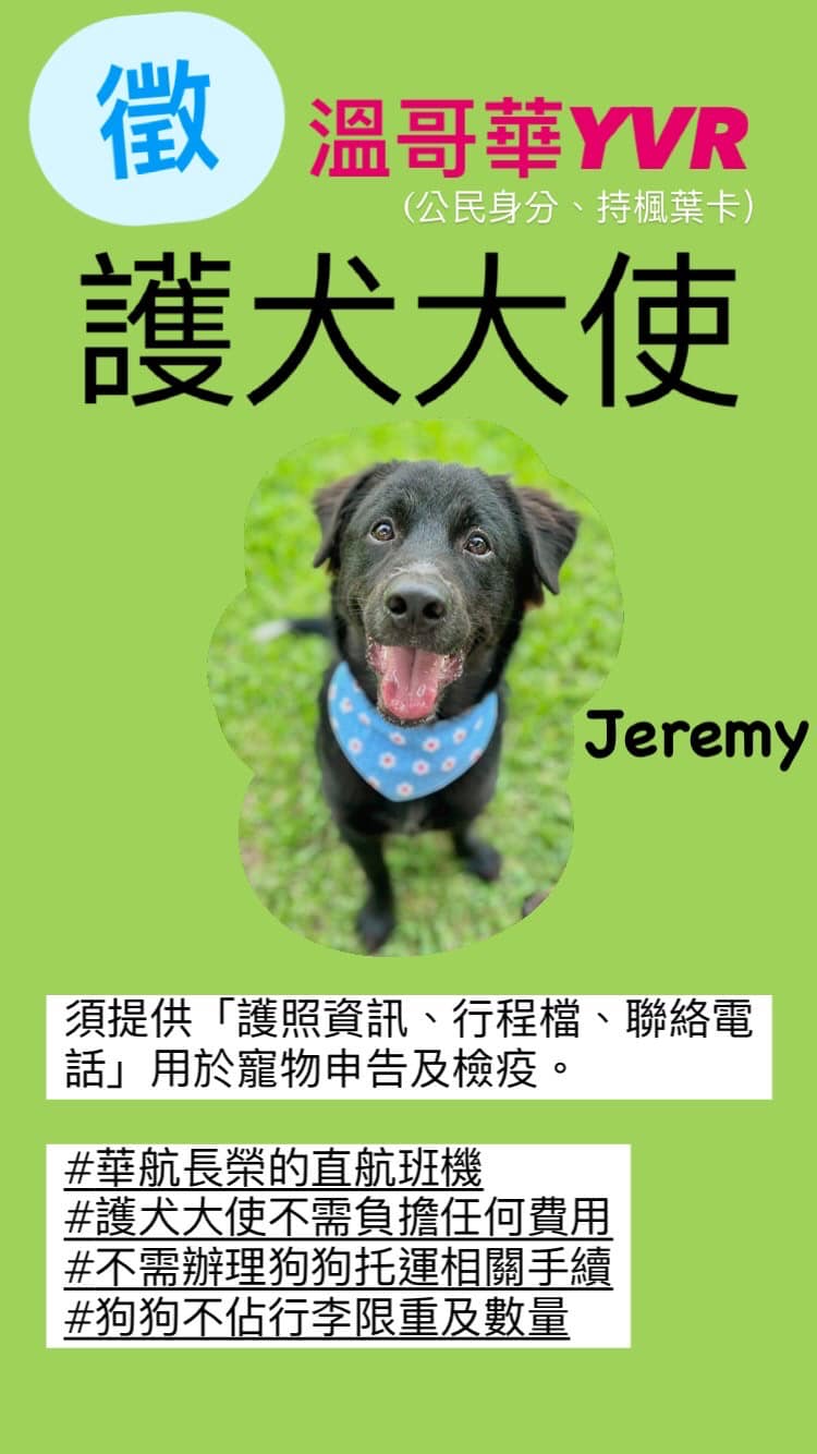 『護犬/貓大使』就是協助將狗狗帶到國外、飛向幸福的重要人物。 狗狗們沒辦法自己搭飛機,所以他們必須掛在乘客的名下、成為你的『行李』,和你一起飛到國外。