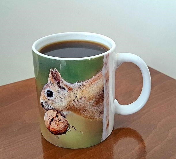 drinking hot drinks, such as coffee, hot chocolate, or tea.