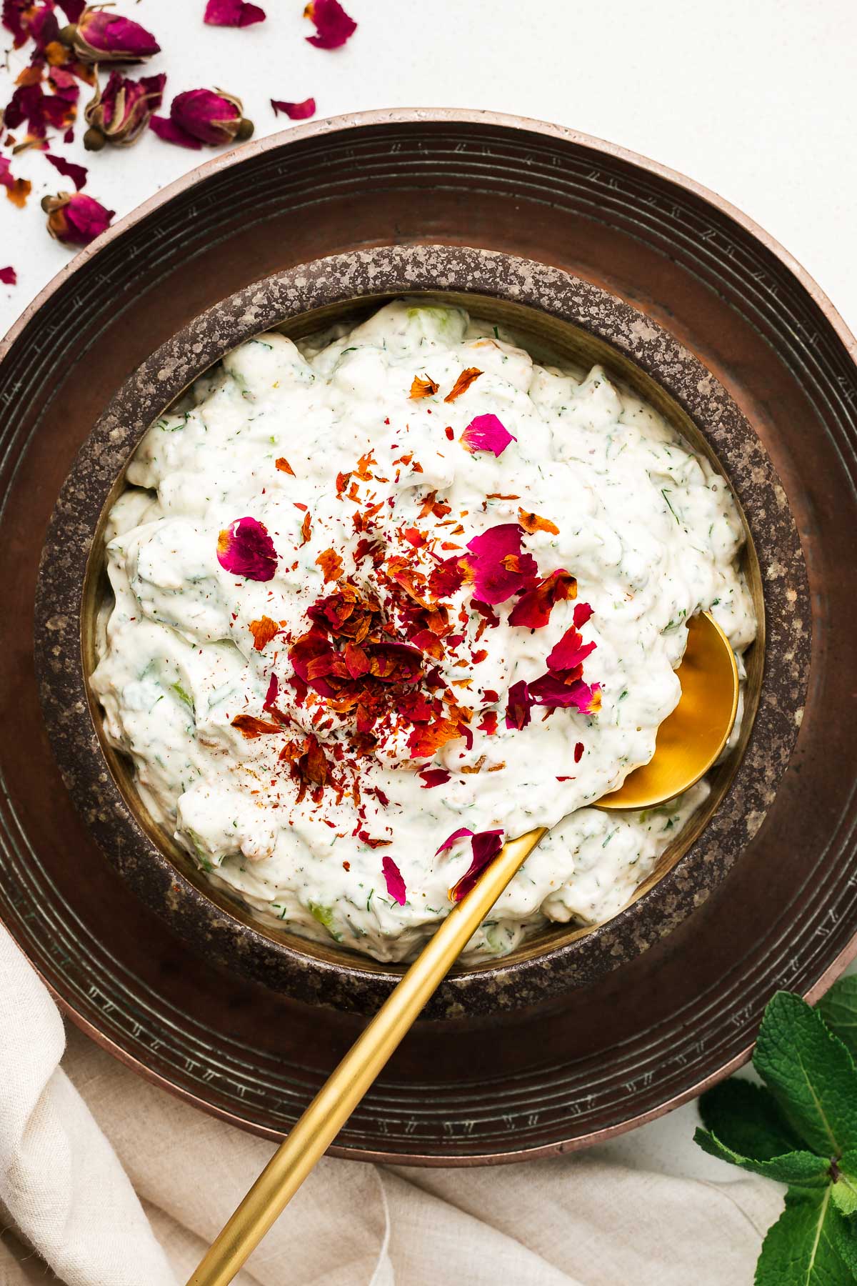 quince, prunes, apricots and raisins. Characteristic Iranian spices
