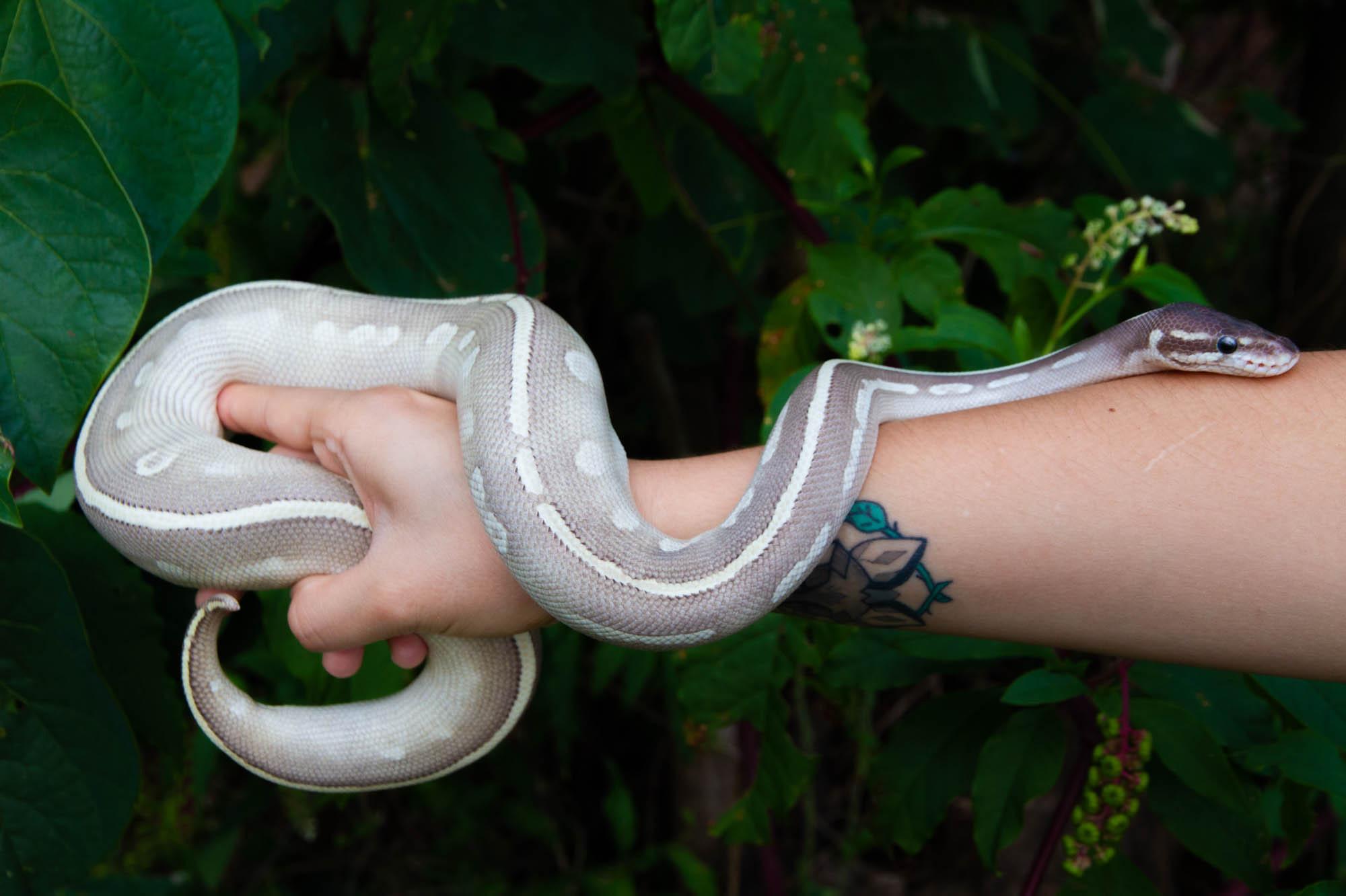 When two or more genes are visably dominant, more color and pattern variations emerge, inlcuding, but not limited, to eye color. Below in an example of the Blue Eyed Leucistic ball python, otherwise known as "Blue Eyed Lucy". It carries the gene combination of mystic and butter!