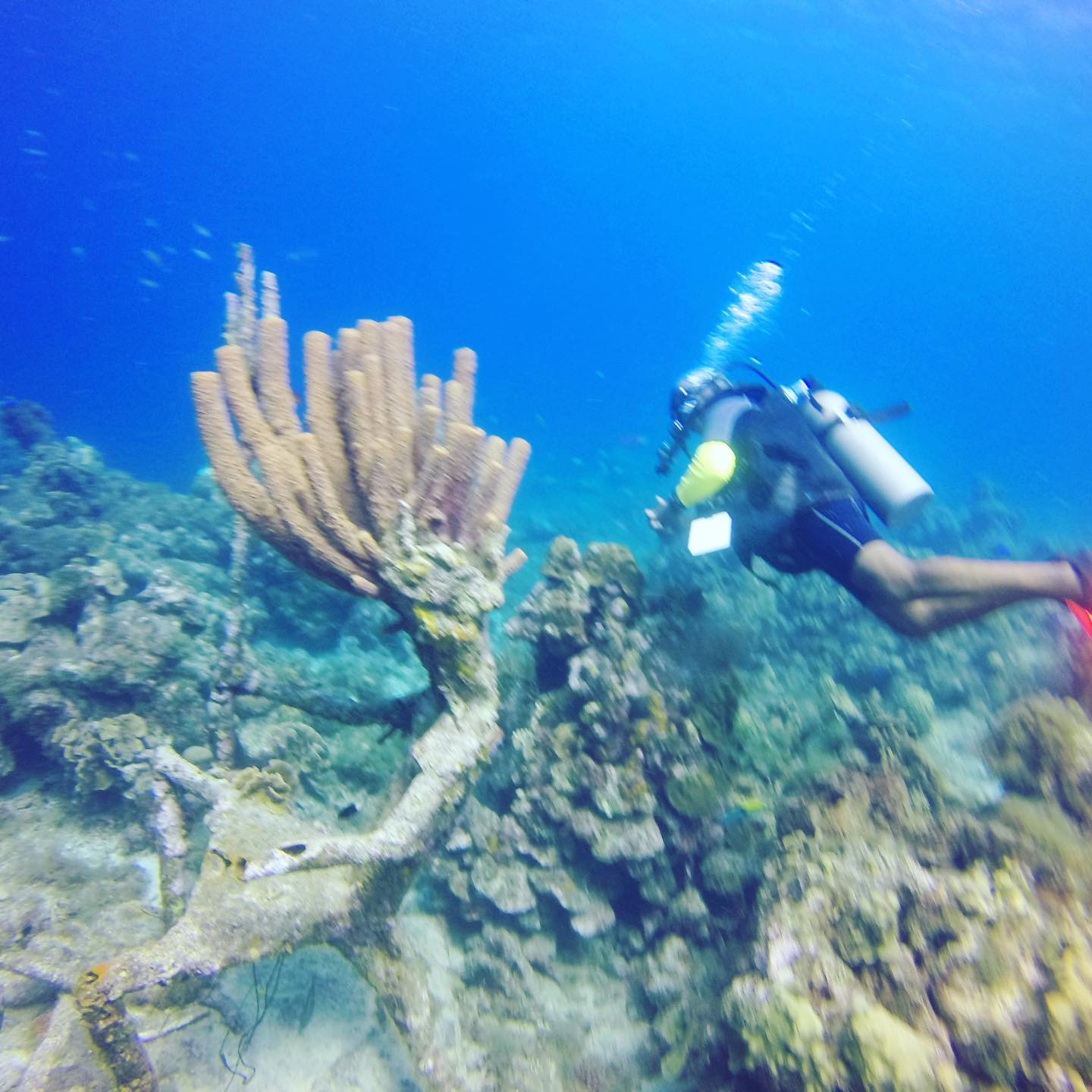 "Scuba diving is a water sport that involves breathing air from a tank while underwater. Scuba is an acronym for "Self Contained Underwater Breathing Apparatus". Most scuba divers are recreational divers who explore underwater environments such as lakes, rivers, quarries, kelp forests and coral reefs. There are also people who scuba dive for work including public safety divers, marine biologists and many others."