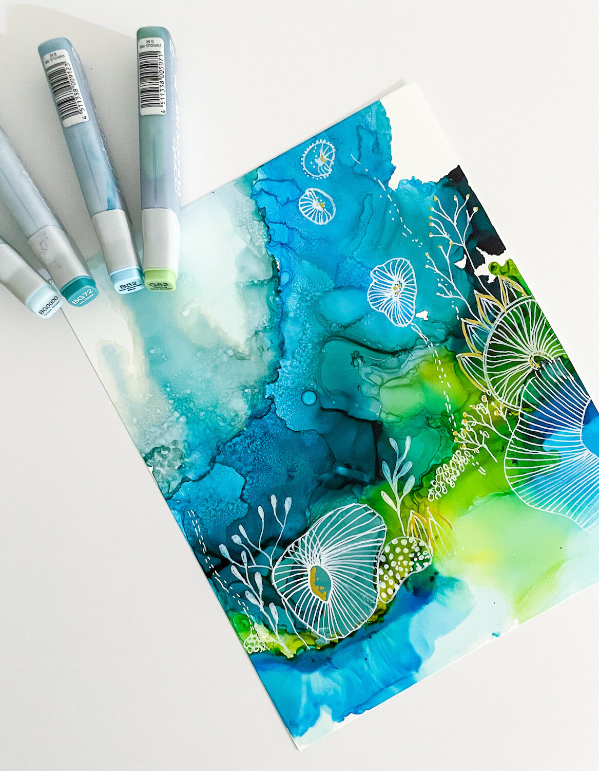 more alcohol on top, giving you more freedom over your art. Alcohol inks