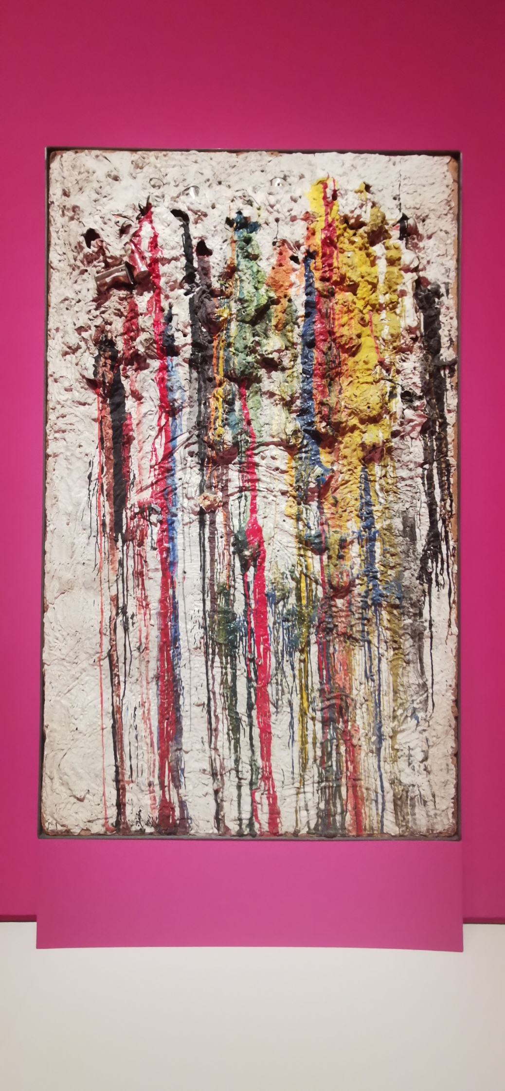 the relief. In her “Shooting Painting” from 1961, the arrangement of the objects did not follow any specific