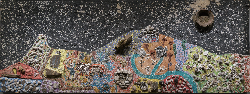 colorful assemblages – artworks on whose picture carriers plastic objects are mounted in a collage.