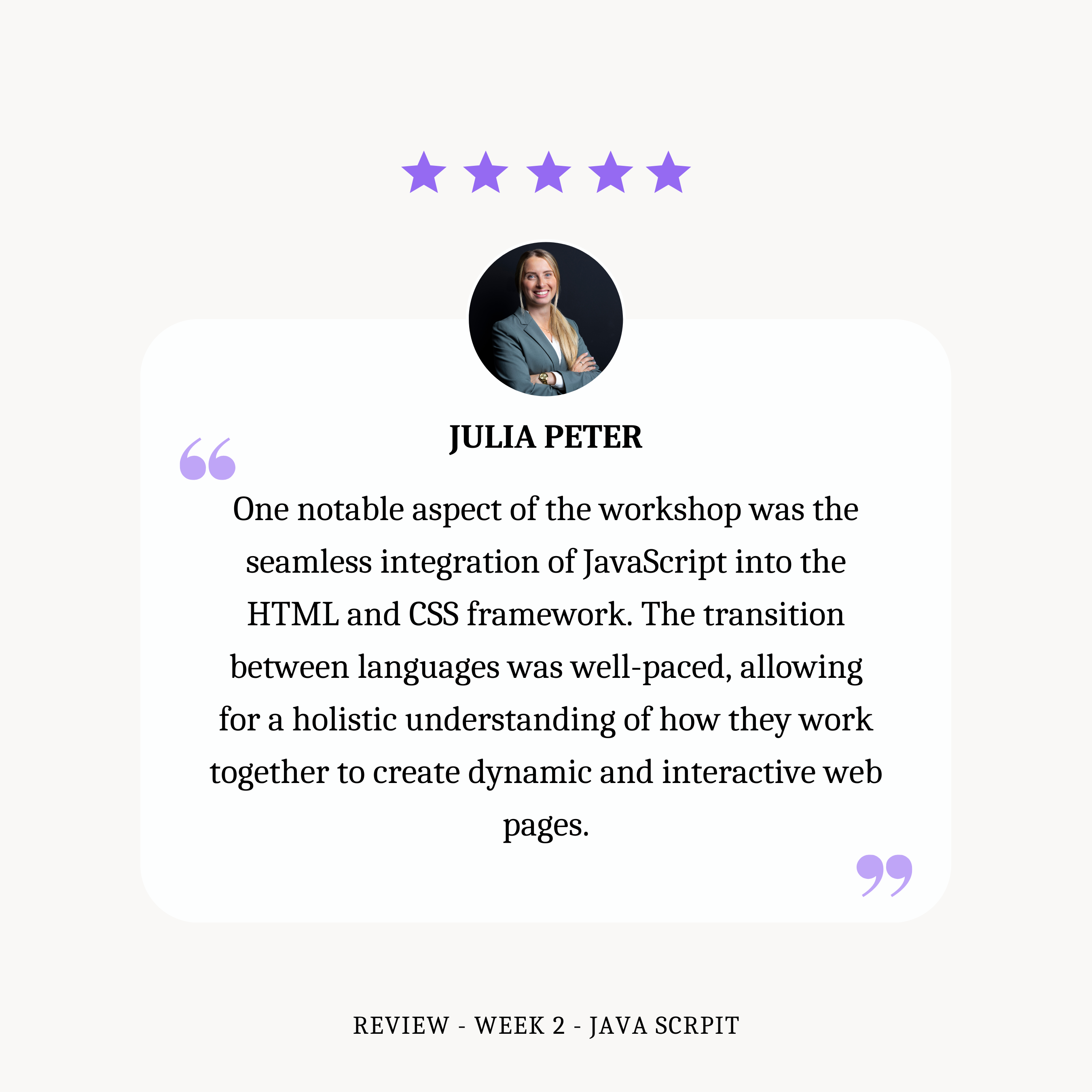 The combination of engaging lessons, practical exercises, and community support made this week a truly enriching experience.