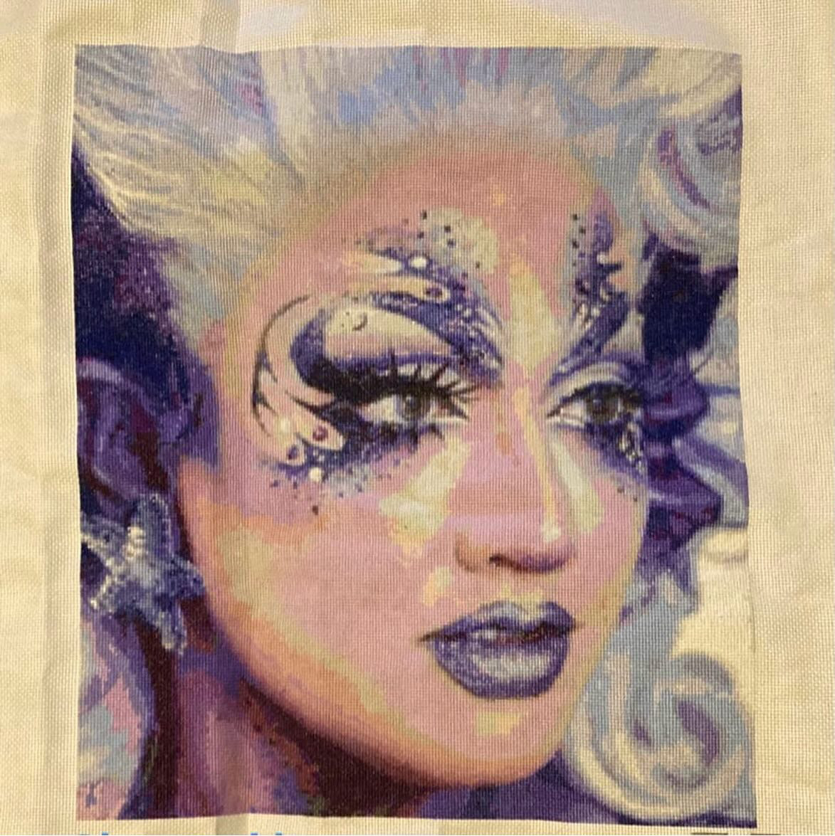 done on designs printed on the fabric (stamped cross-stitch); the stitcher simply stitches over the