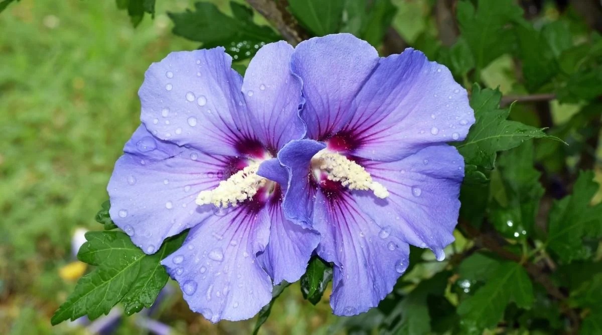 The Bluebird hibiscus variety is a large blossom with an array of blue shades, making it one of the most stunning flowers. Many people see the blossom as a shade of purple rather than blue, but this is debatable. The edges of the petals are usually a deeper shade, and the petals have a sort of ombre effect, lightning toward the middle. But the center is darker than the rest of the flower, creating an eye in the center. This hibiscus shrub has a vase shape that is ideal for lining walkways or the back of your garden.