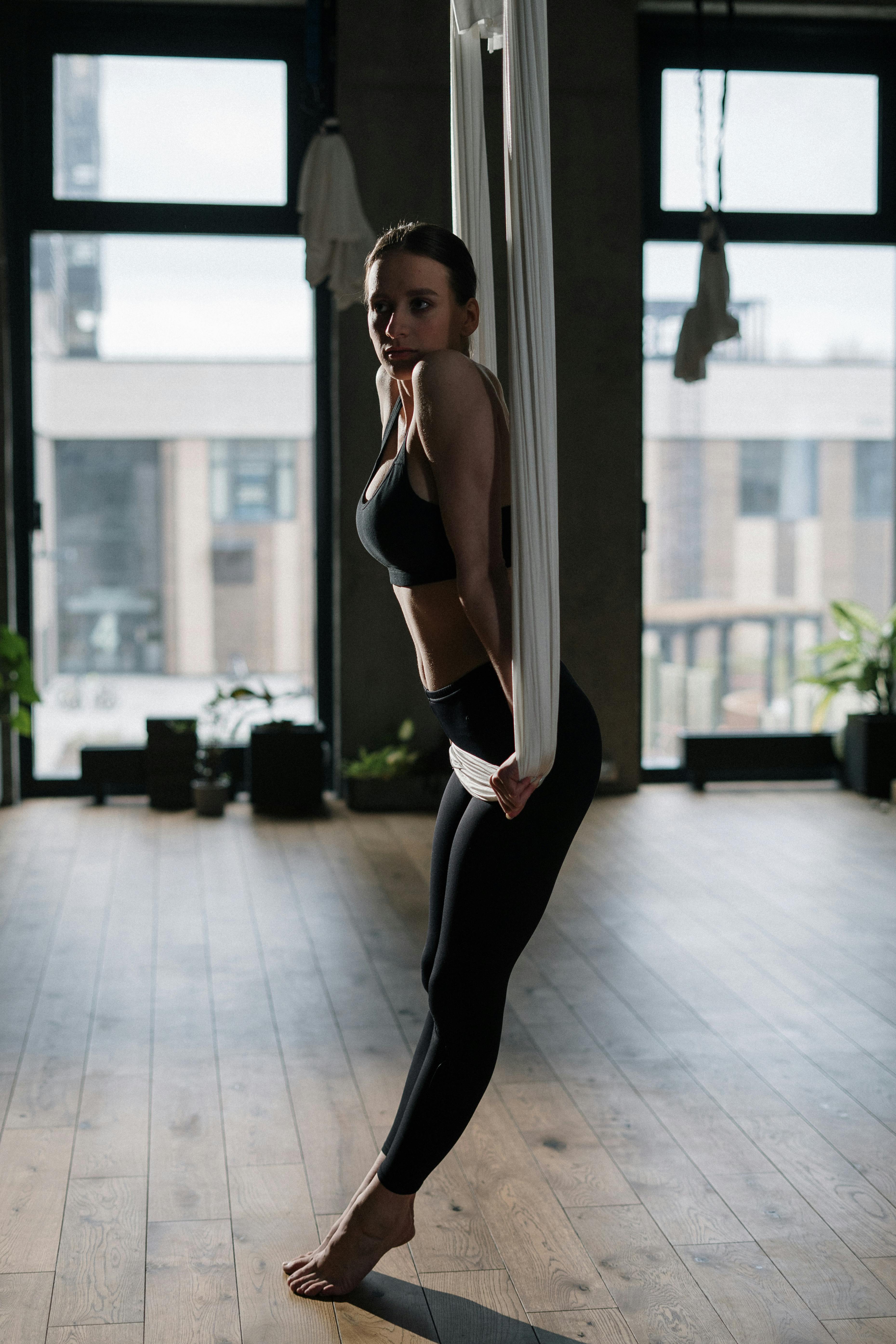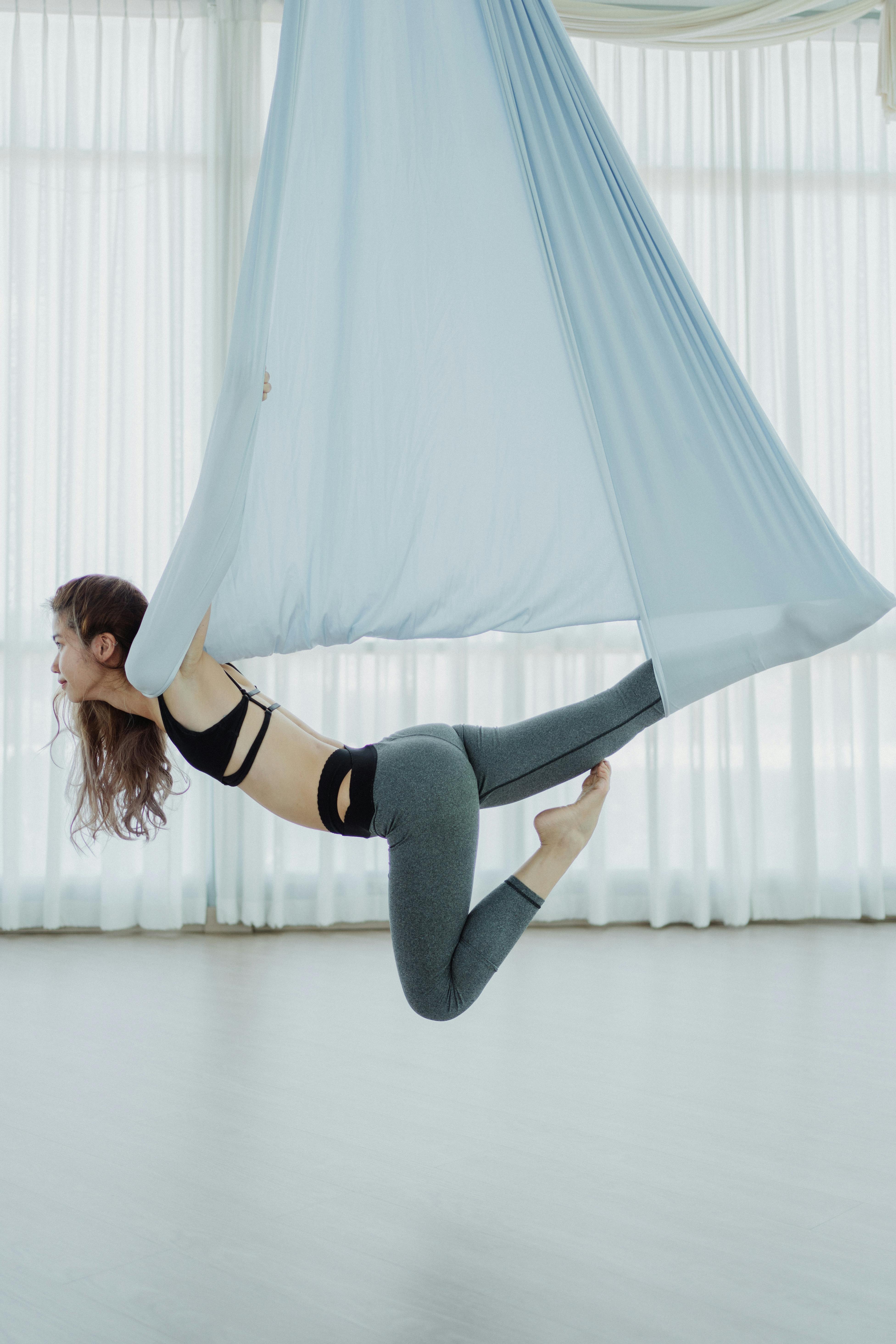 Aerial silks is a type of performance in which one or more artists perform aerial acrobatics while hanging from a specialist fabric. The fabric may be hung as two pieces, or a single piece, folded to make a loop, classified as hammock silks. Many diverse disciplines derive from this practice, such as: fly fitness, hammock, aerial yoga, fly pilates, and more.