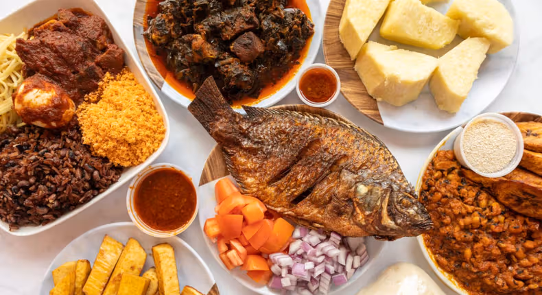Ghanaian cuisine refers to the meals of the people of Ghana. The main dishes of Ghana are centered around starchy staple foods, accompanied by either a sauce or soup as well as a source of protein. The primary ingredients for the vast majority of soups and stews are tomatoes, hot peppers, and onions.