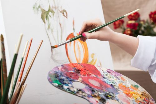 Painting is a visual art, which is characterized by the practice of applying paint, pigment, color or other medium to a solid surface (called the "matrix"[1] or "support").The medium is commonly applied to the base with a brush, but other implements, such as knives, sponges, and airbrushes, may be used. In art, the term "painting" describes both the act and the result of the action (the final work is called "a painting"). The support for paintings includes such surfaces as walls, paper, canvas, wood, glass, lacquer, pottery, leaf, copper and concrete, and the painting may incorporate multiple other materials, including sand, clay, paper, plaster, gold leaf, and even whole objects.