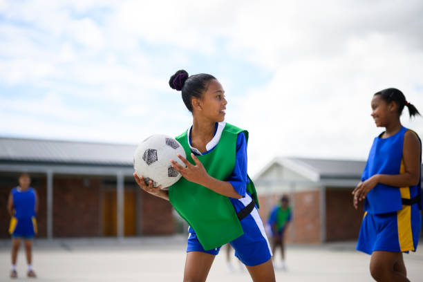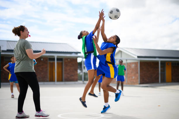 Netball is a ball sport played on a rectangular court by two teams of seven players. The primary objective is to shoot a ball (680 to 710 millimetres (27 to 28 in) in circumference) through the defender's goal ring (380 millimetres (15 in) in diameter mounted 3.05 metres (10.0 ft) high to a goal post at each end of the court) while preventing the opposing team from shooting through their own goal ring. 📖Read on Wikipedia