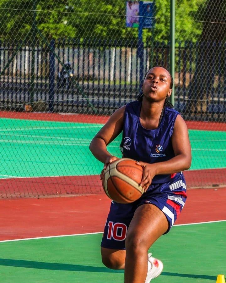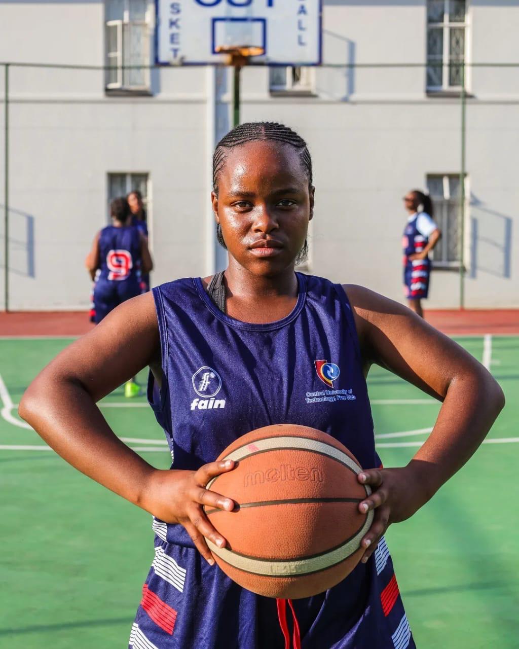 through their own hoop. Players advance the ball by bouncing it while
